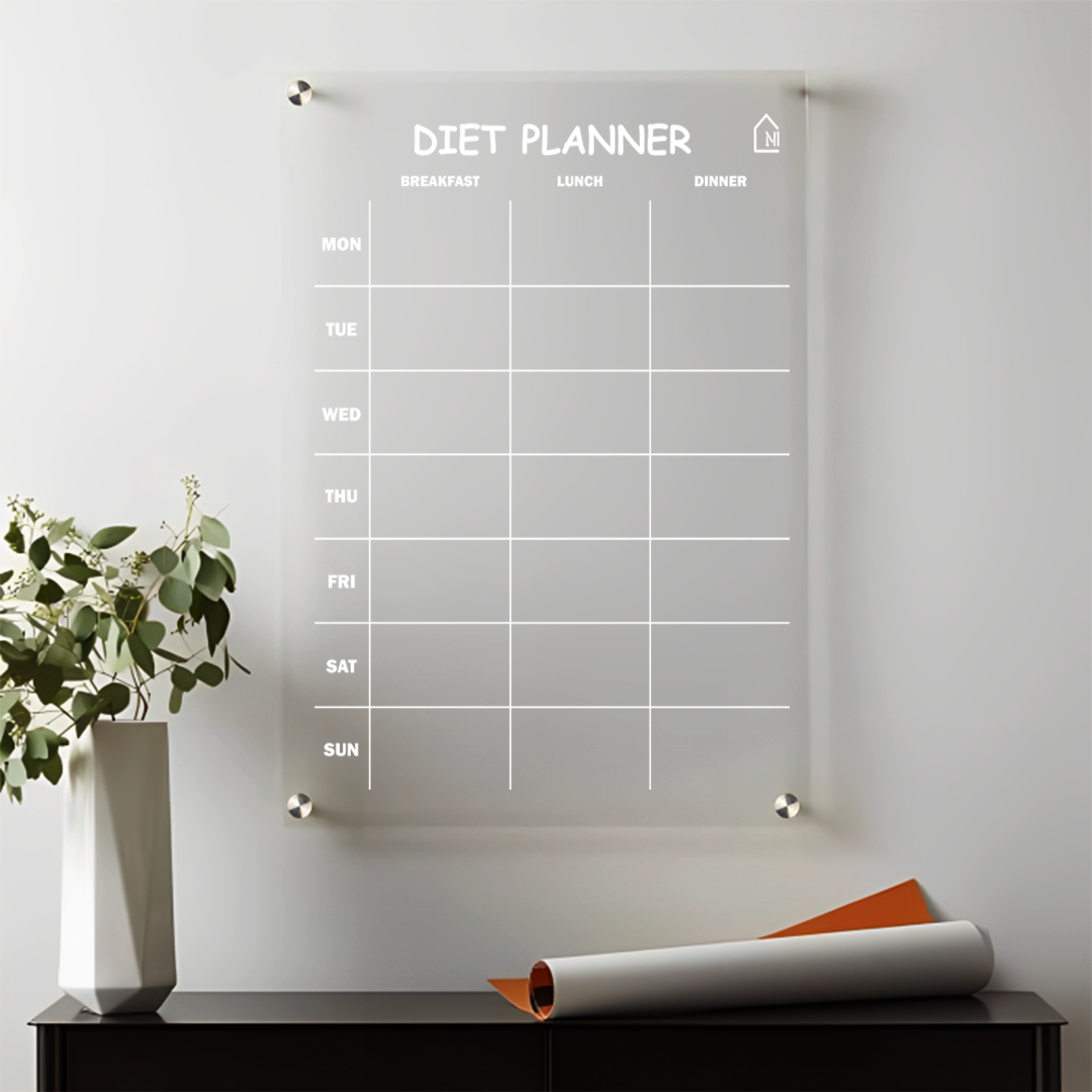 Weekly Acrylic Diet Planner Board – Reusable Meal Organizer for Healthy Living