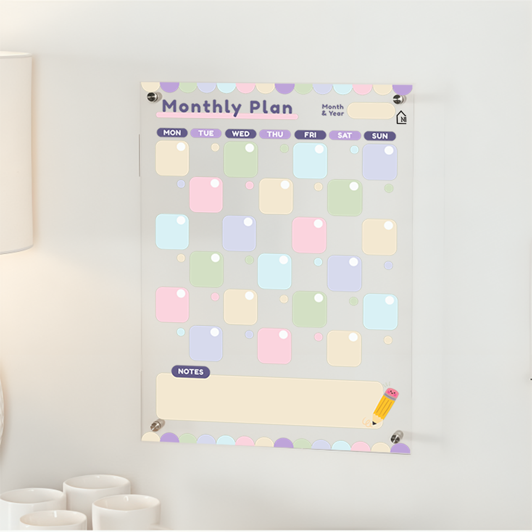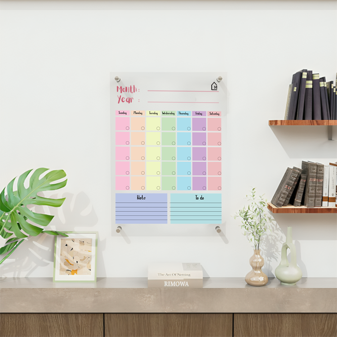 Colorful Acrylic Monthly Planner Board with Notes Section – Reusable Wall Calendar for Home & Office