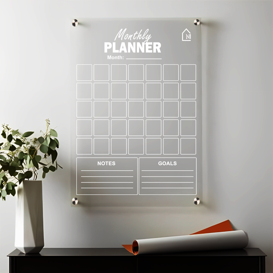 Premium Acrylic Monthly Planner Board with Notes & Goals Section – Reusable Wall Calendar