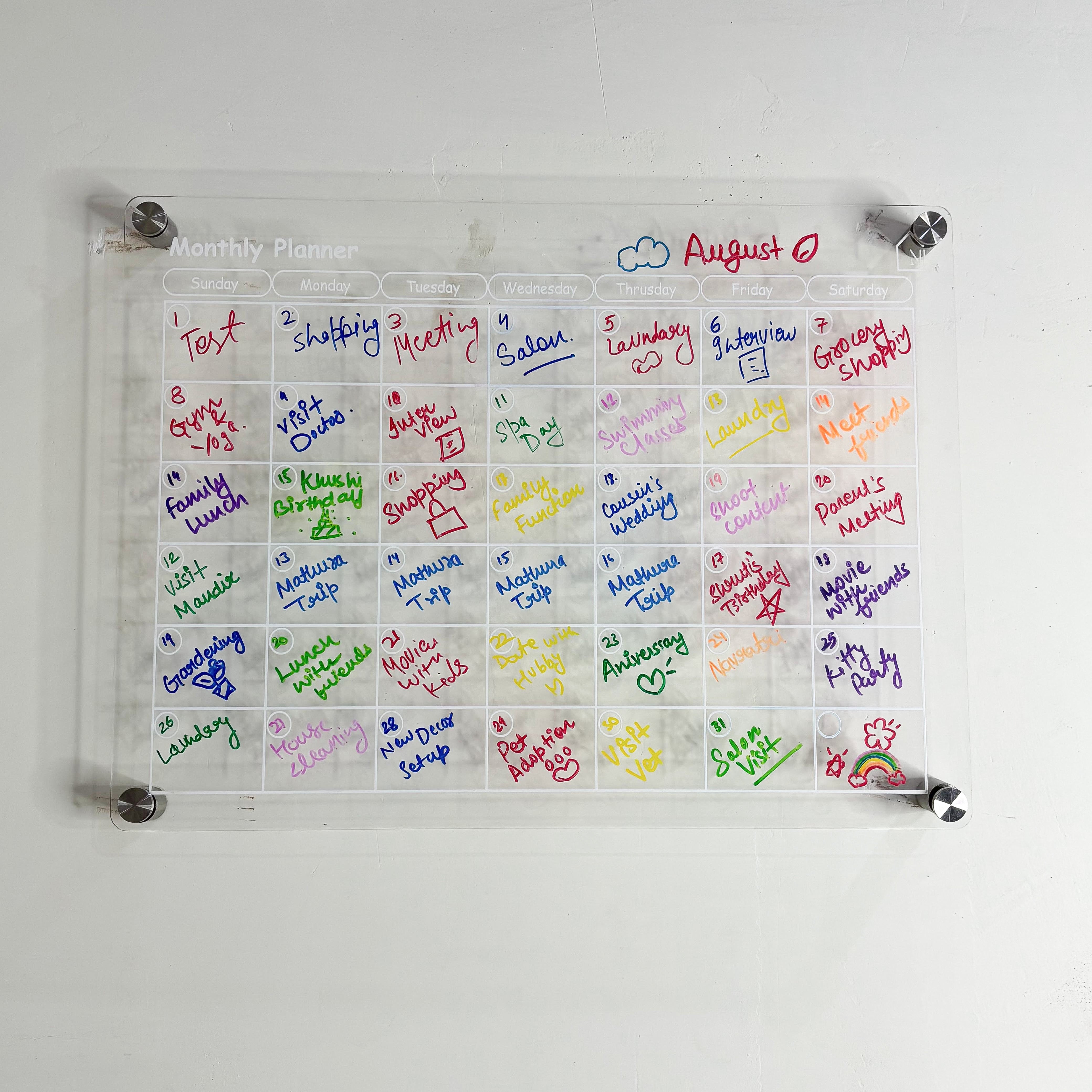 Acrylic Monthly Planner Board – Reusable Wall Organizer with Markers