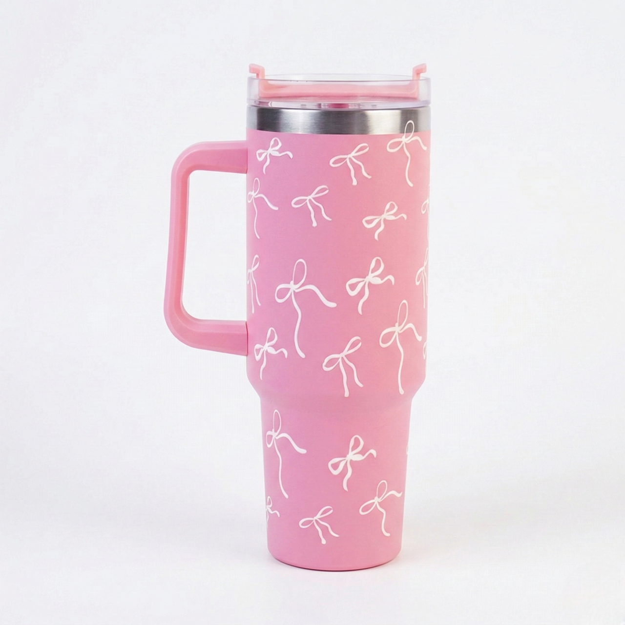 Pink Bow Insulated Tumbler with Handle & Straw