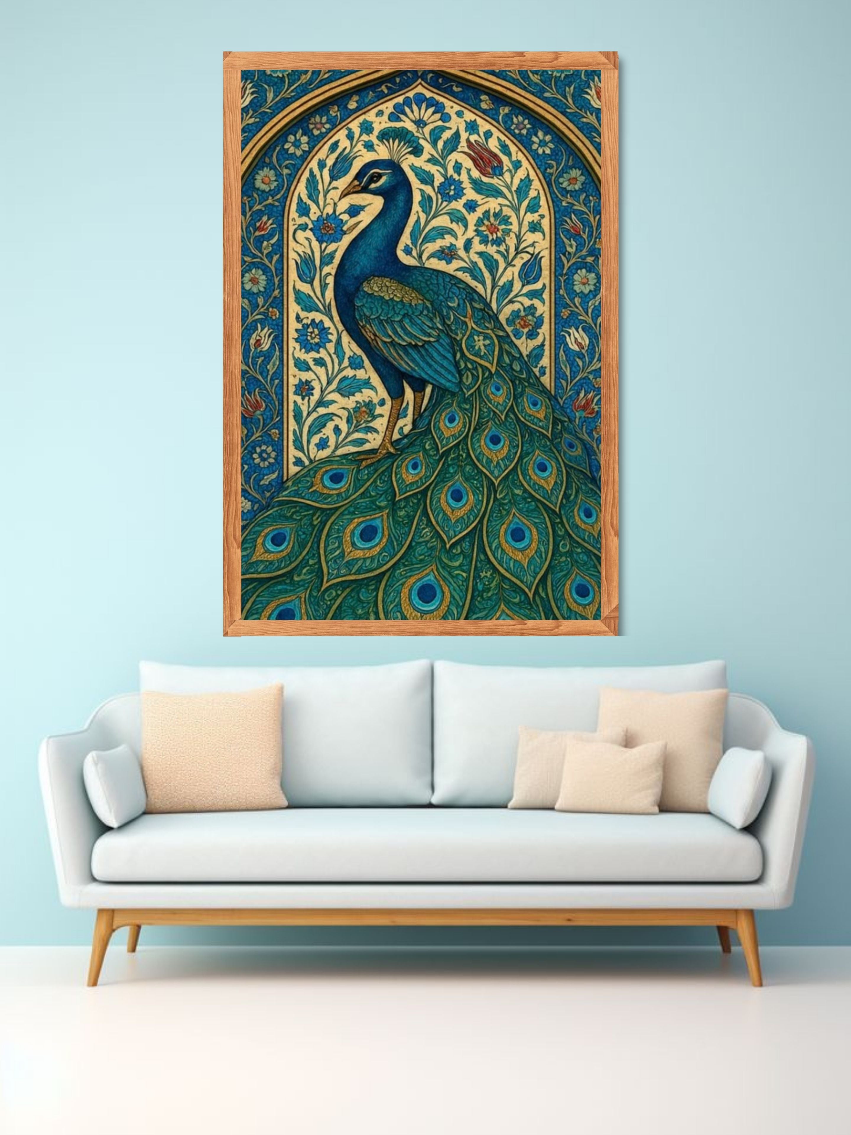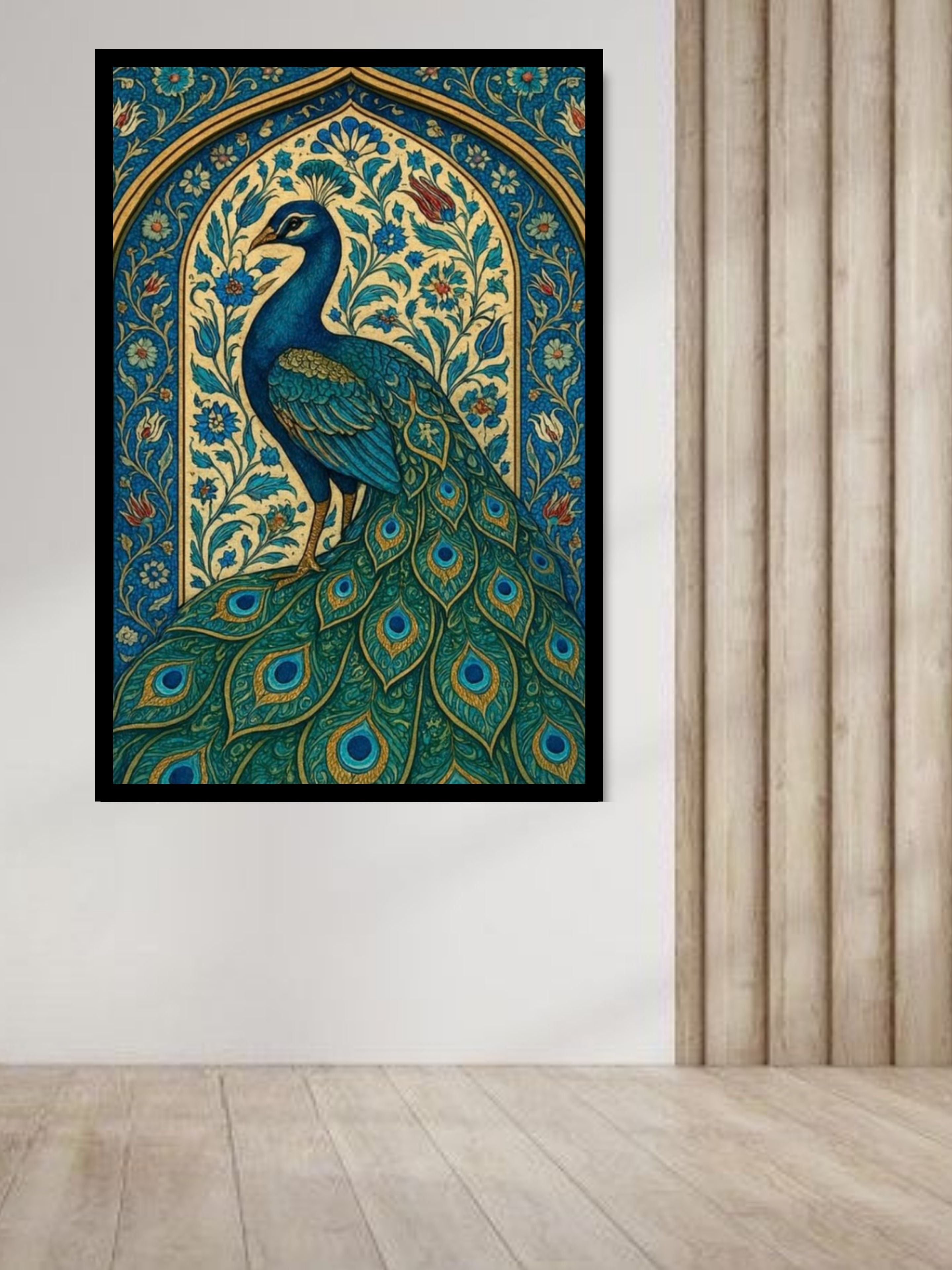 Royal Peacock Canvas Wall Art | Traditional Indian Bird Painting
