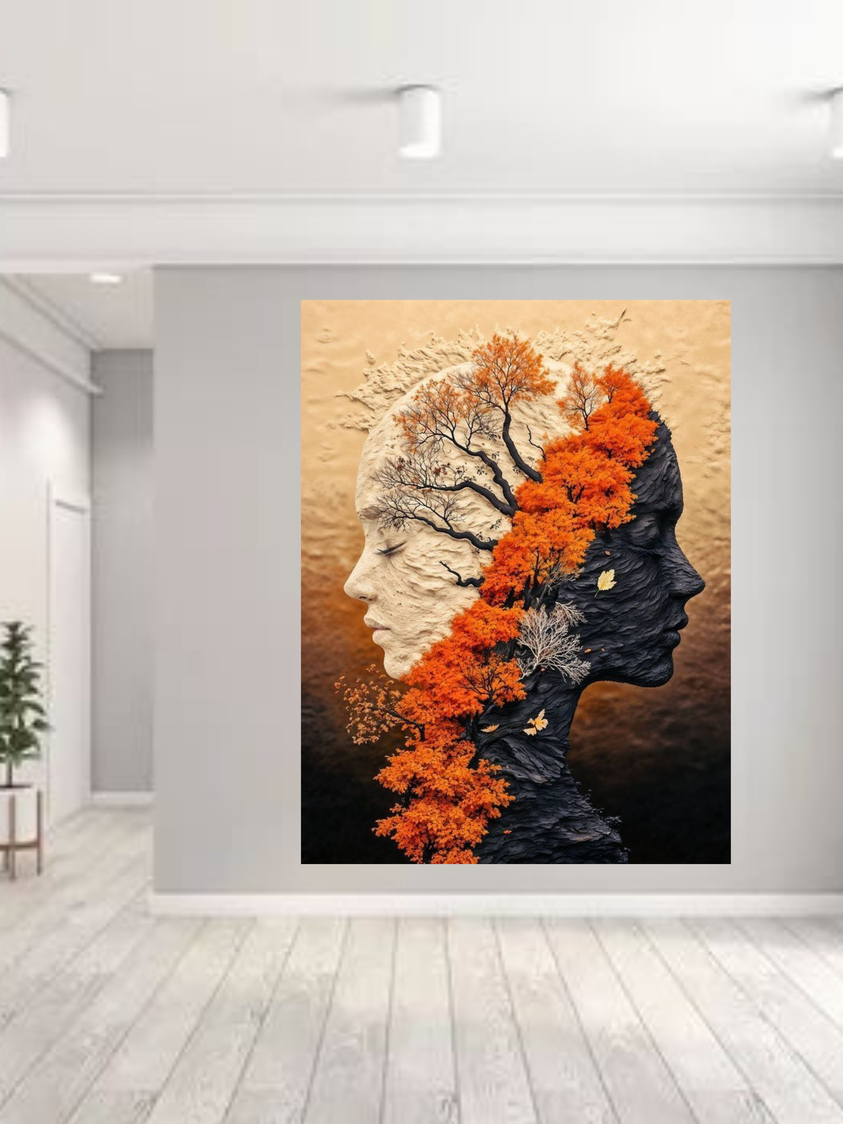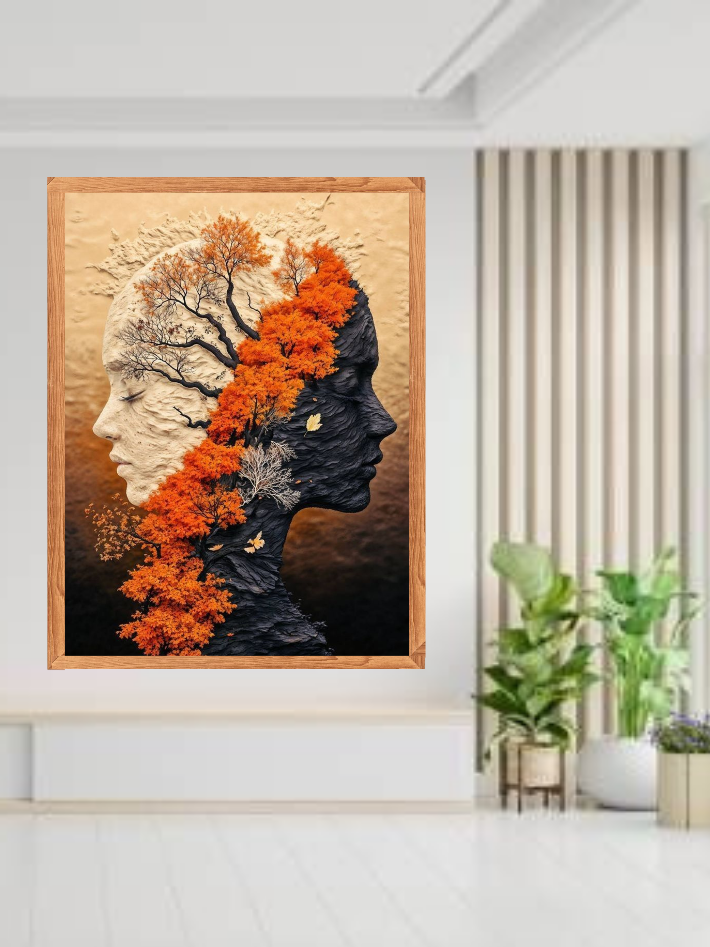 Regular price From Rs. 1,999.00Sale price From Rs. 1,999.00 Regular priceUnit price perSale Sold outTransform your space with this 30×40 inch canvas print that beautifully blends art and nature . Featuring two contrasting profiles — one in soft earthy tones ...