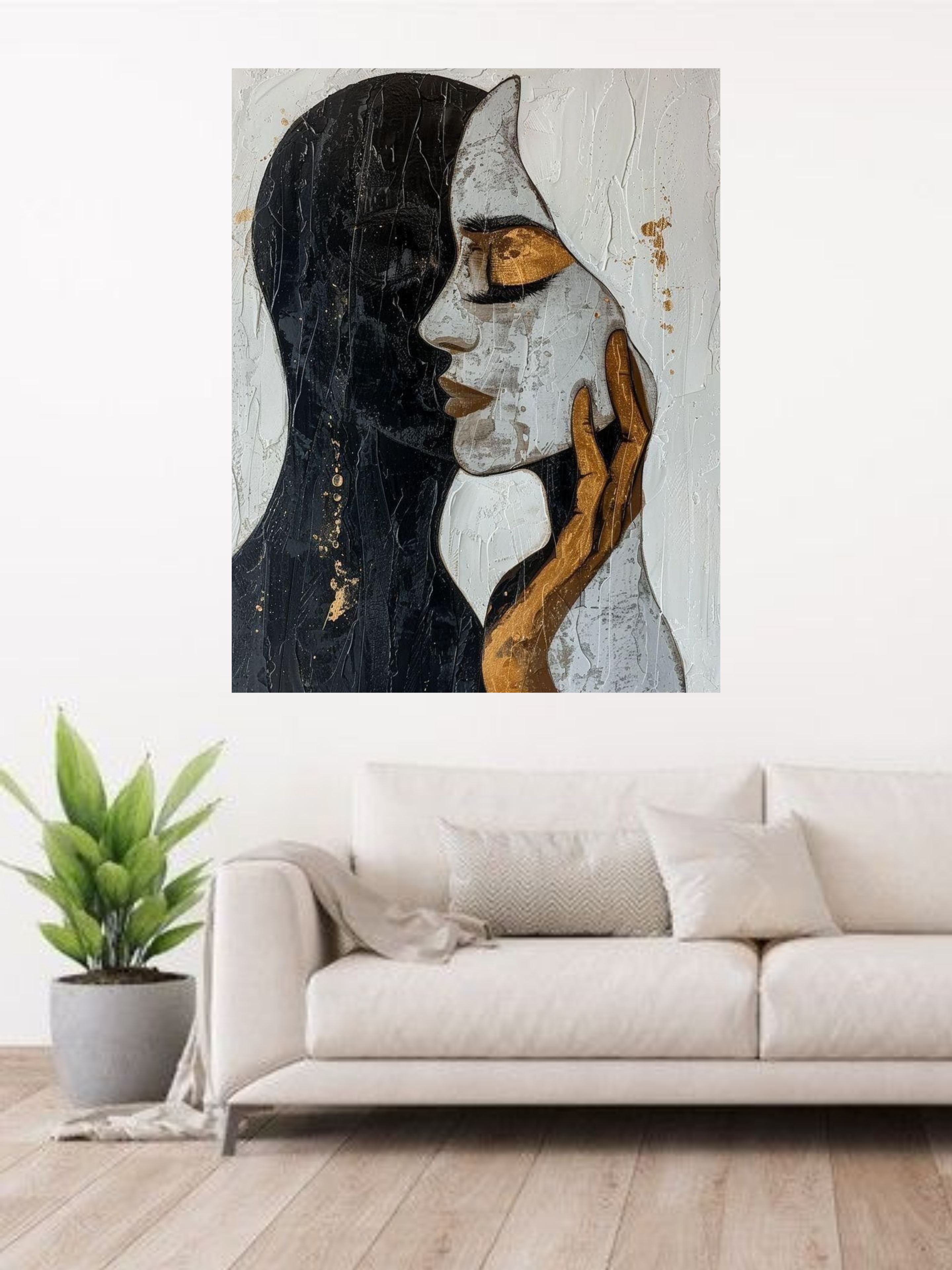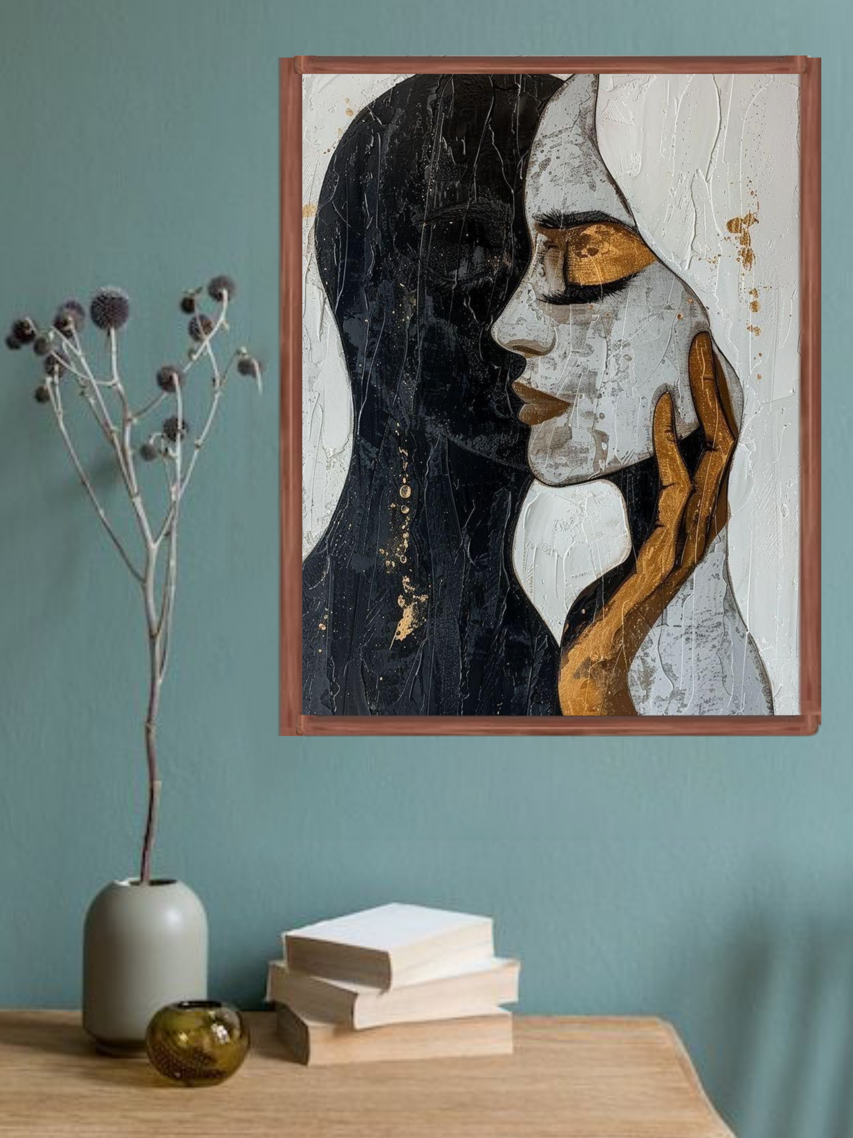 Regular price From Rs. 1,999.00Sale price From Rs. 1,999.00 Regular priceUnit price perSale Sold outExpress the beauty of love, connection, and duality with this 30×40 inch canvas print. Featuring two intertwined faces in bold black and white textures , highlighted with...