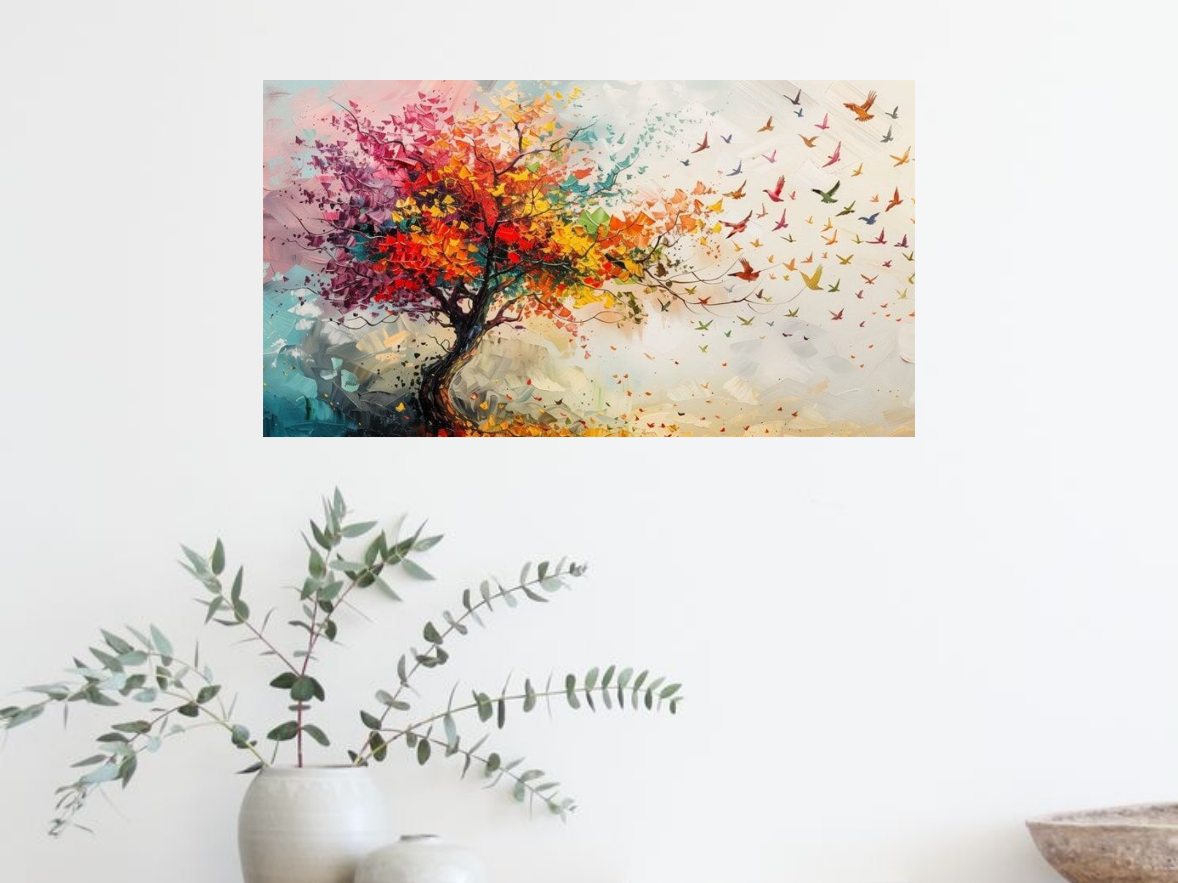 Wings of Freedom – Colorful Tree & Birds Wall Art