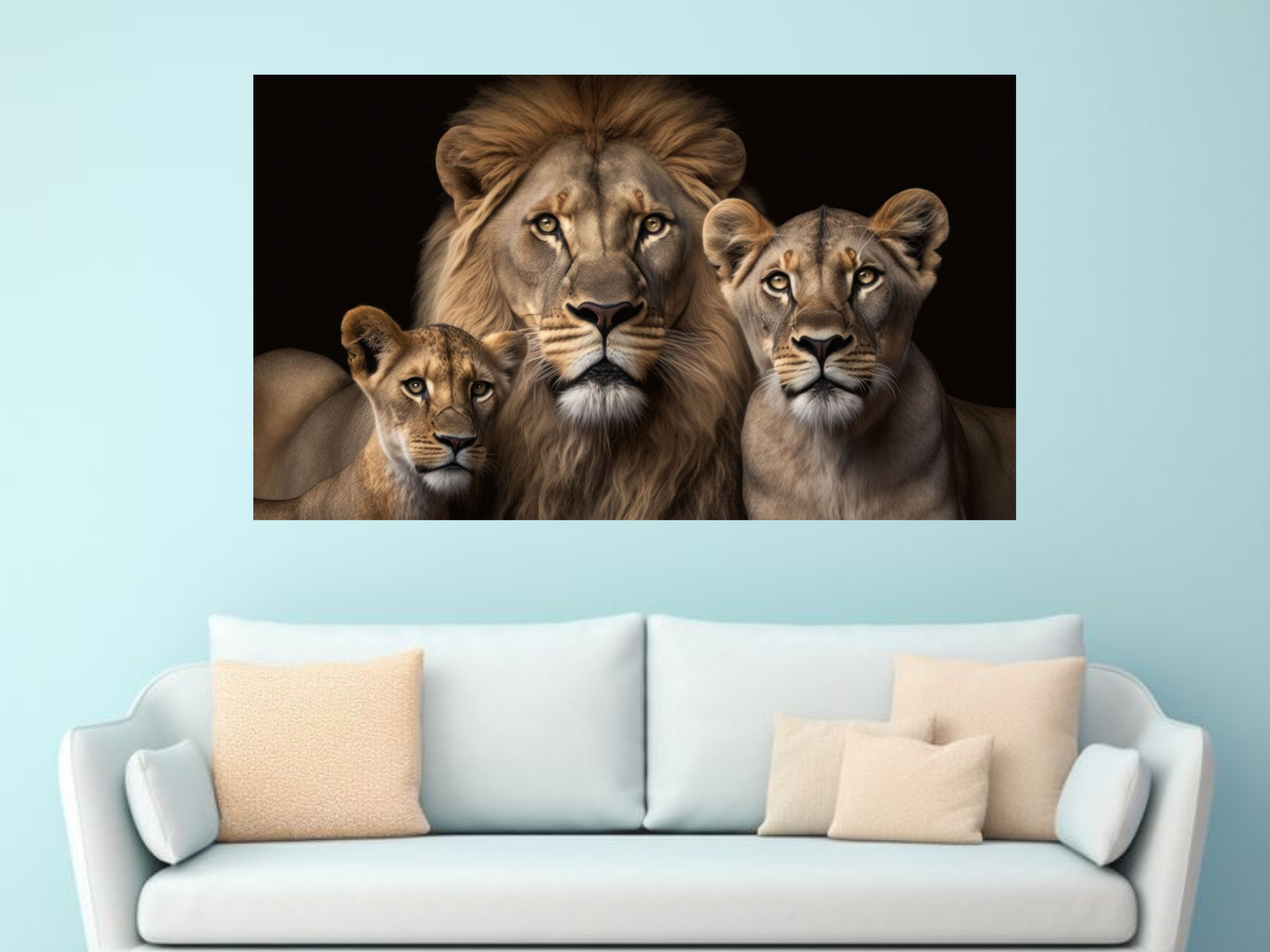 Majestic Lion Family Wall Art – Strength, Unity & Royal Elegance