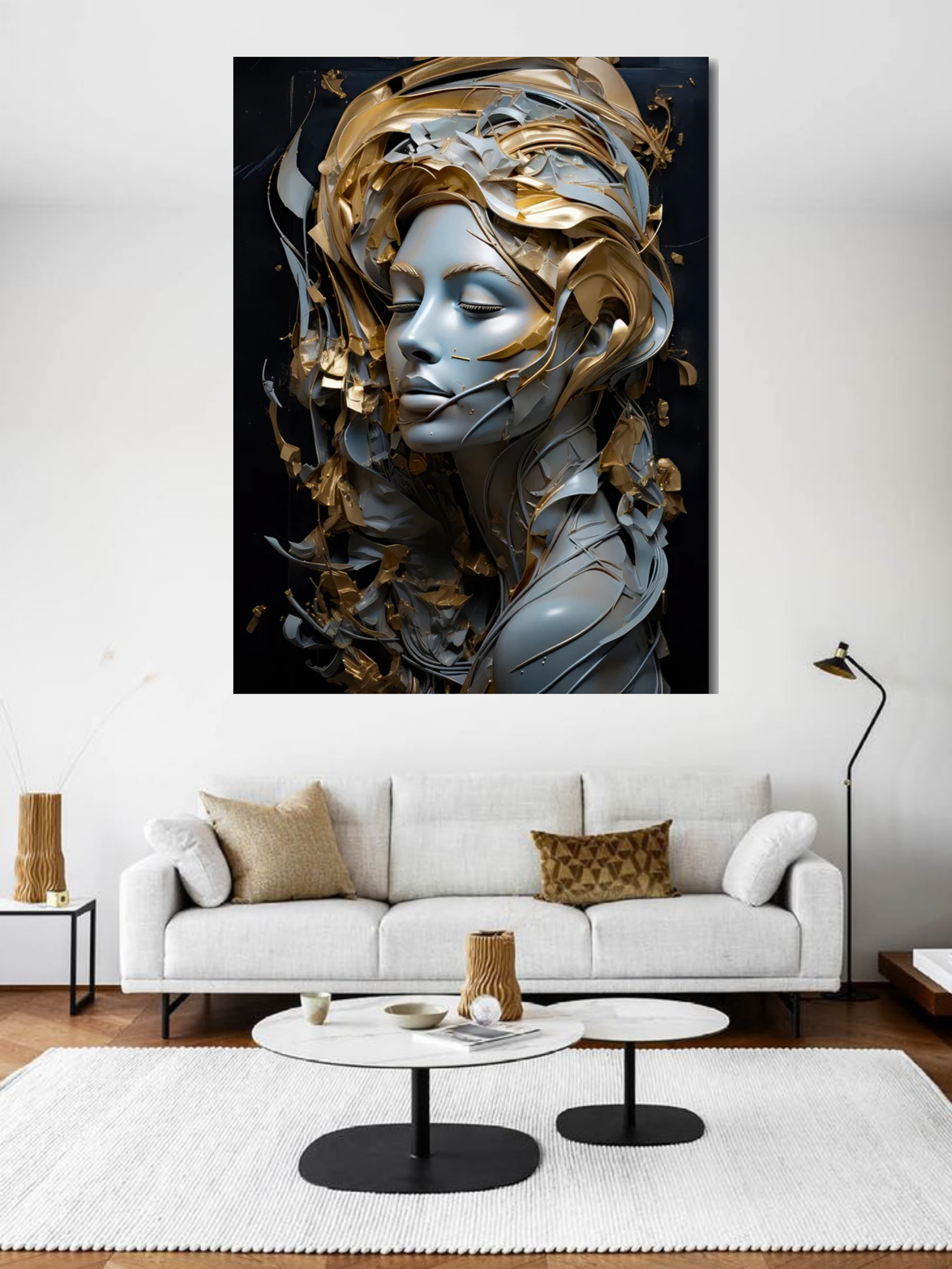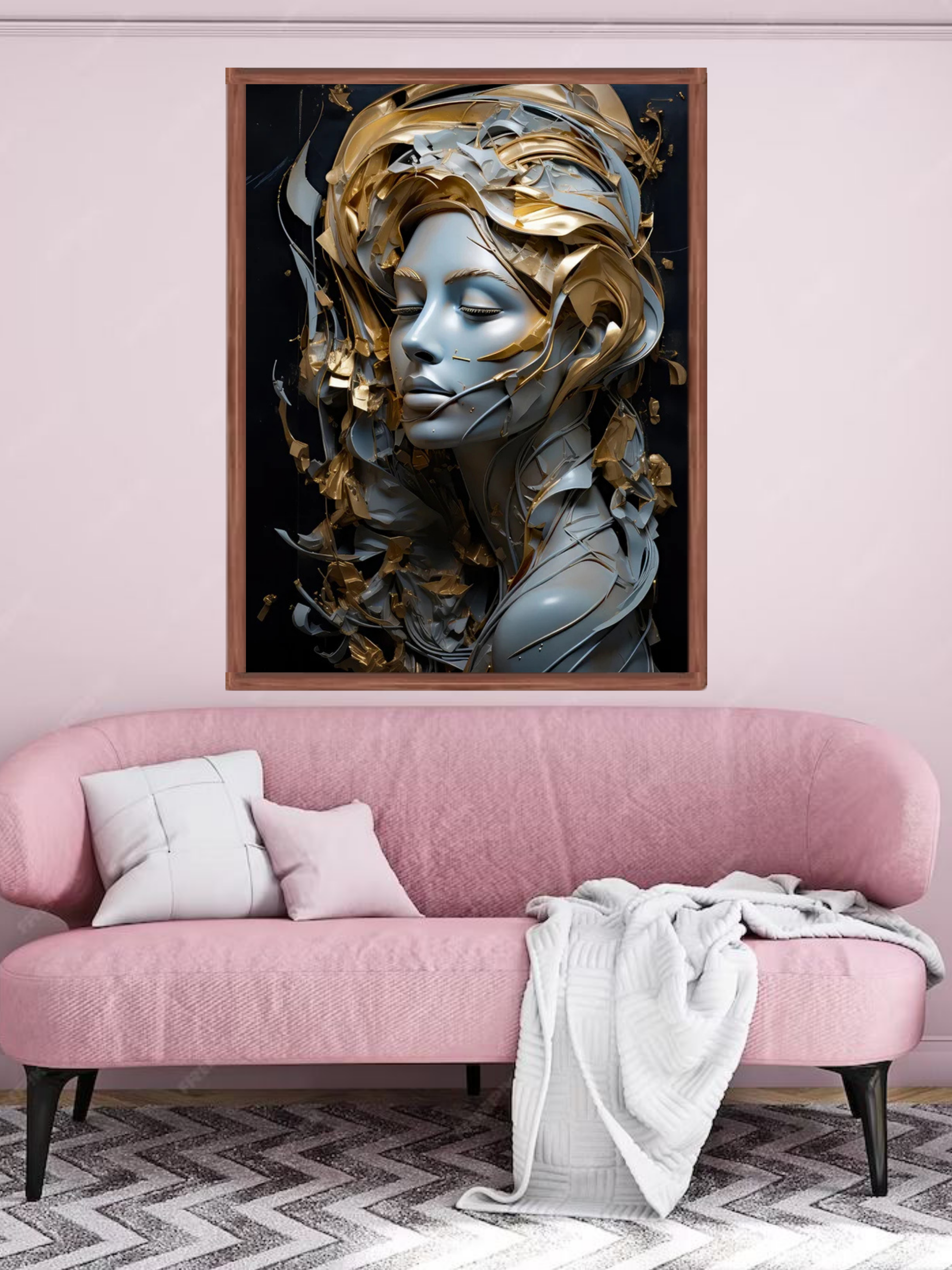 Regular price From Rs. 1,999.00Sale price From Rs. 1,999.00 Regular priceUnit price perSale Sold outAdd timeless elegance to your walls with this 30×40 inch masterpiece . Featuring a serene feminine portrait in metallic gold & silver tones , this canvas blends...