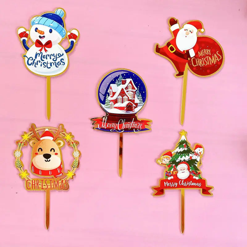 Merry Christmas Cake Topper Cake Decoration ( PACK OF 5 )