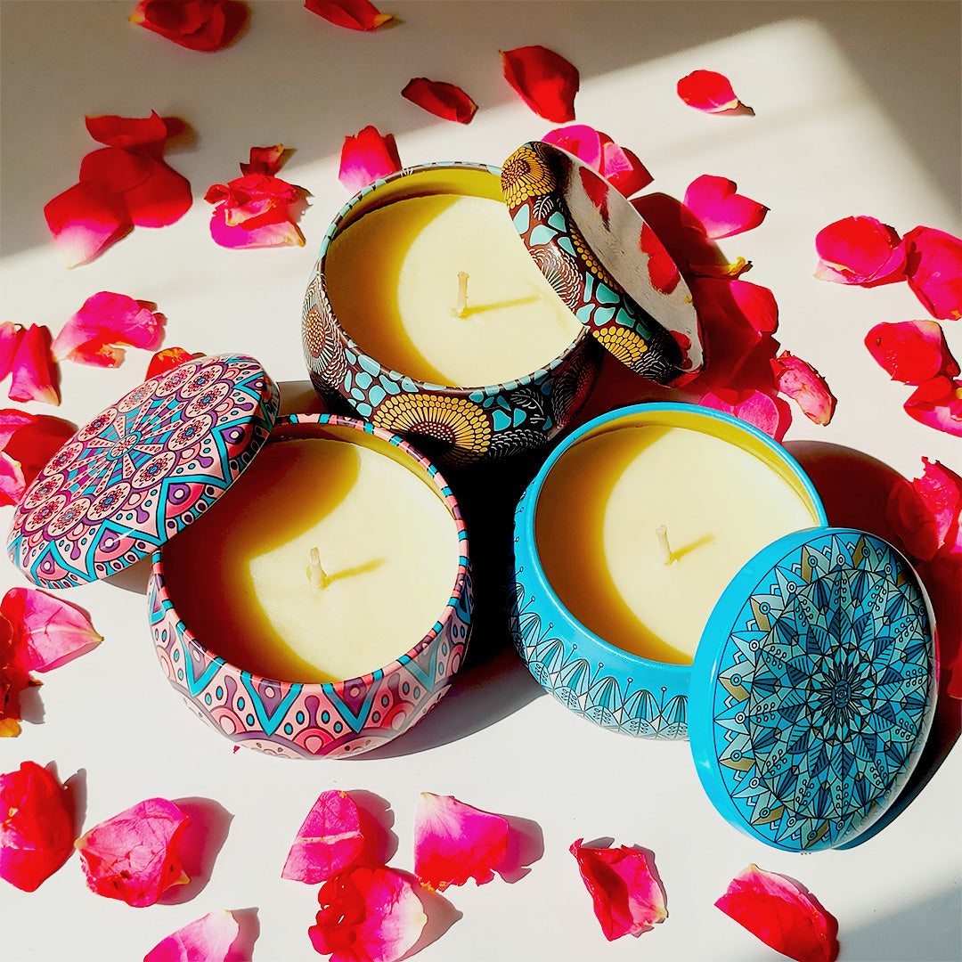 Mandala Glow Scented Candles – Set of 3 Boho Decorative Tins