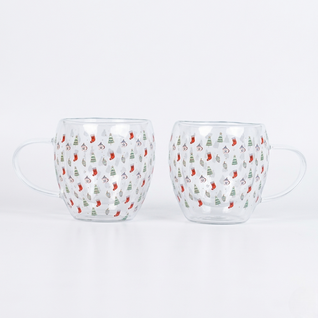 Set-2 Elegant Christmas Glass Mug