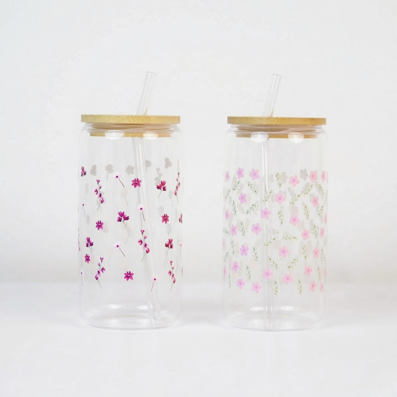 Clear Glass Tumbler with Bamboo Lid & Reusable Glass Straw
