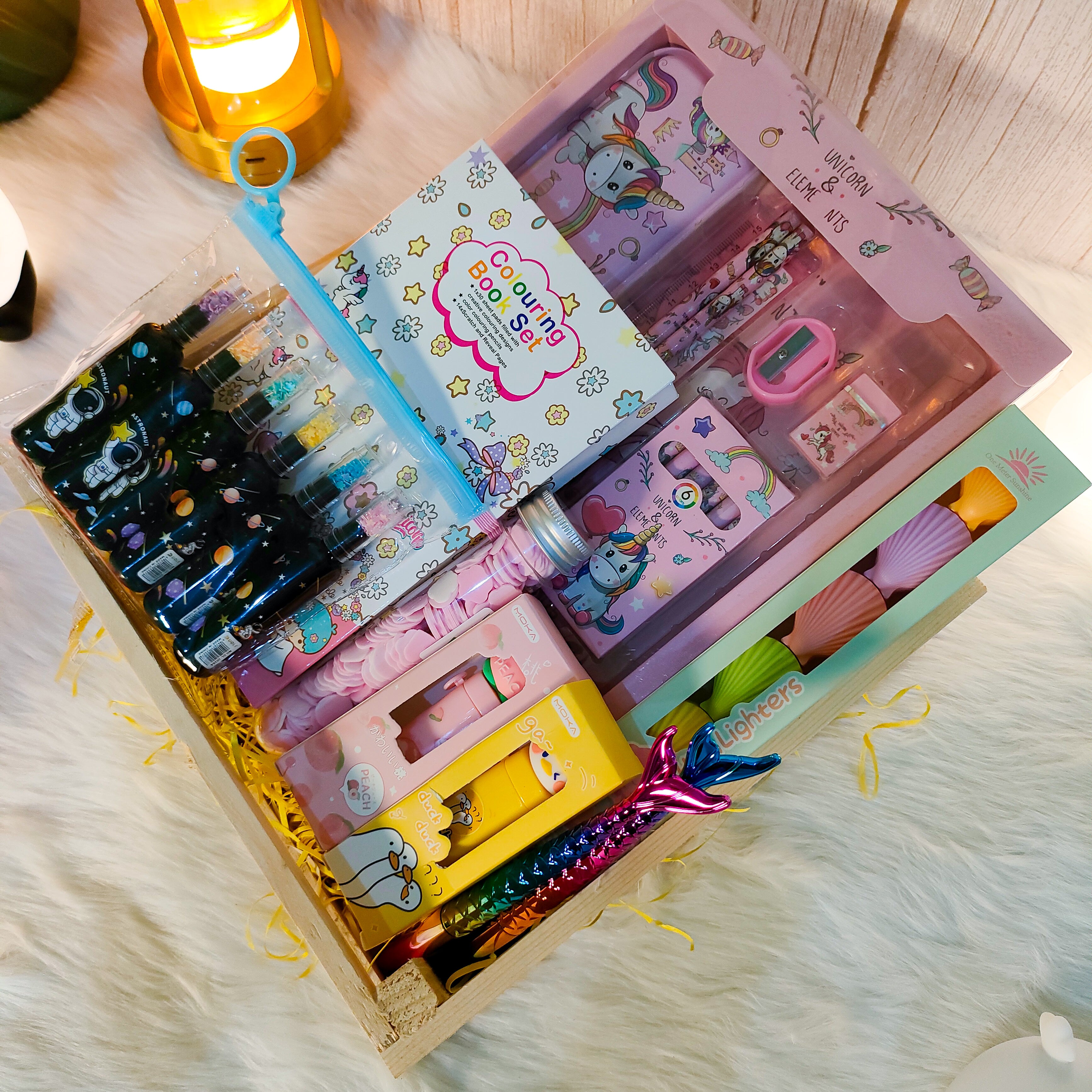 Regular price Rs. 1,799.00Sale price Rs. 1,799.00 Regular priceUnit price perRs. 2,299.00Sale Sold outHamper Contains :1.Ducking Eraser x 22.Bottle Highlighter set of 6 Combo3.Coloring book4.Mermaid pen x 25.6 Color Mermaid Highlighter 6.Paper Soap bottle7.Stationary kit set8.Wooden Basket