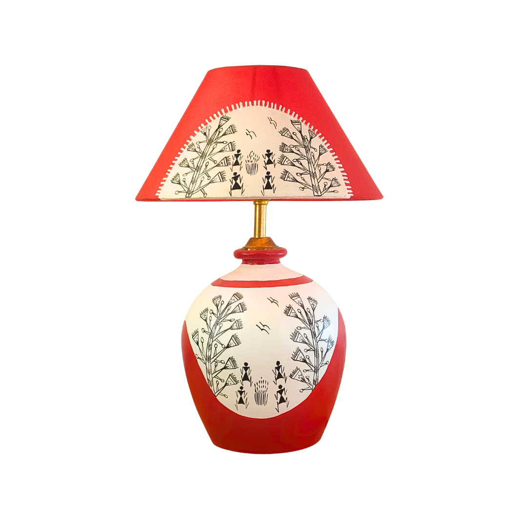 Mud Pot Table Lamp with Hand-Painted Warli Art(Red and White Warli Art)