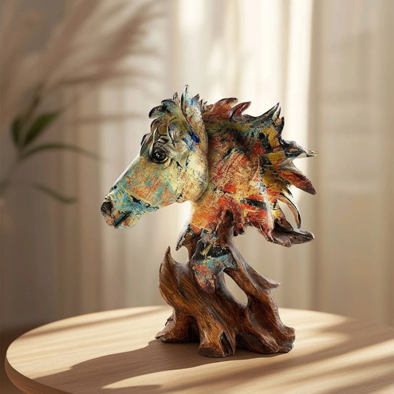 Horse Statue, Horse Lover Horse Art Resin Statue Decorative Home And Office Decorative Ornament For Desktop Bookshelf Wine Cabinet Attract Luck And Fortune-Horse Head A