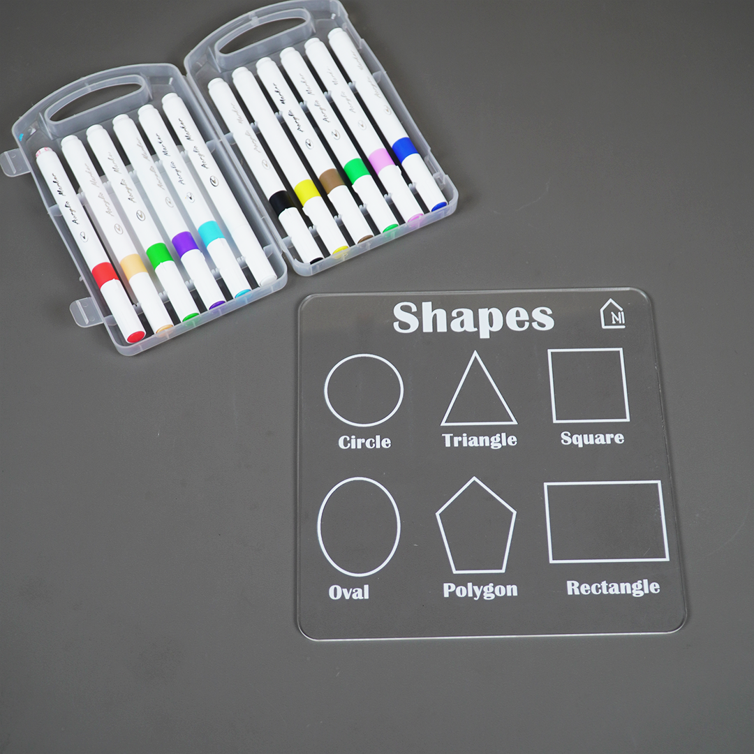 Reusable Shapes Learning Board for Kids with Pen Box & Cleaning Cloth