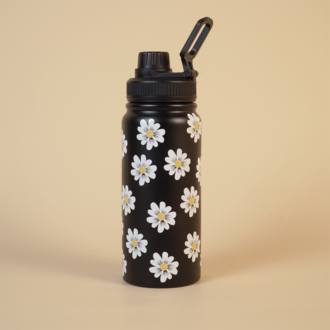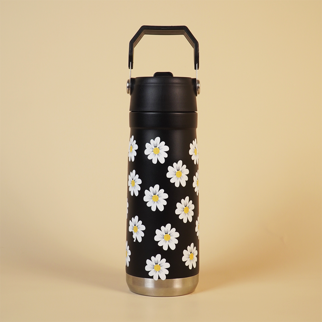 Daisy Bloom Vacuum Insulated Tumbler – 490ml Hot & Cold Stainless Steel Bottle with Carry Loop Lid