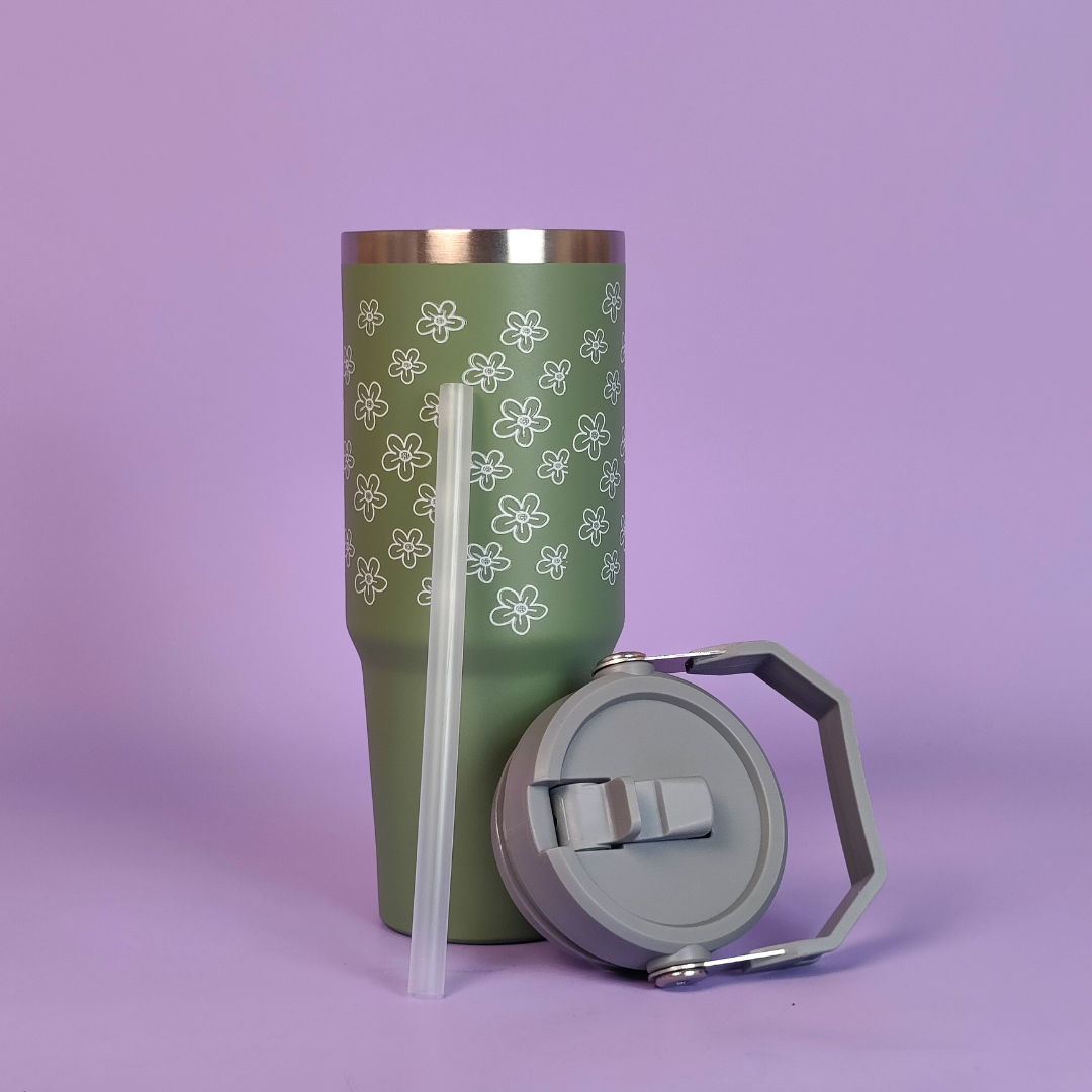 🌿 Olive Bloom Tumbler – Stylish, Durable & Leak-Proof