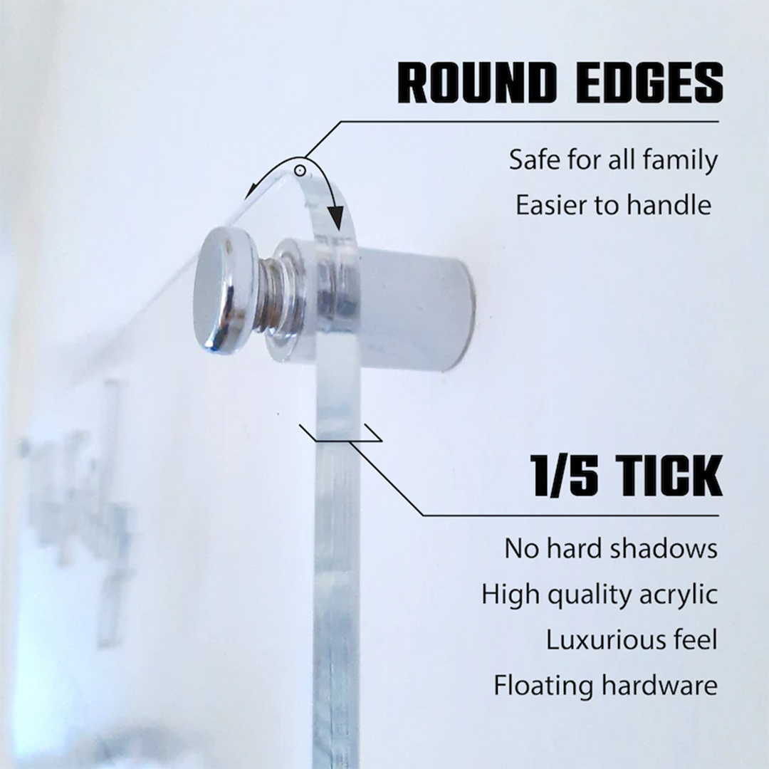 • 🧲 Sleek Floating Mount: Stainless-steel standoff mounts create a modern “floating” effect, making it a stylish addition to any wall.