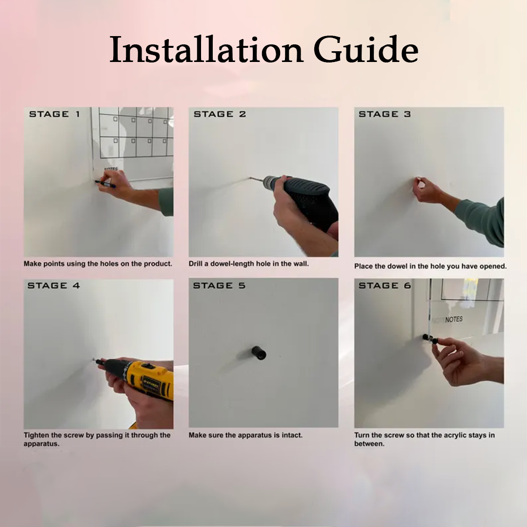 Included in Box 1× Acrylic Planner Board, Wall Mounting Kit (4 screws + hardware set)