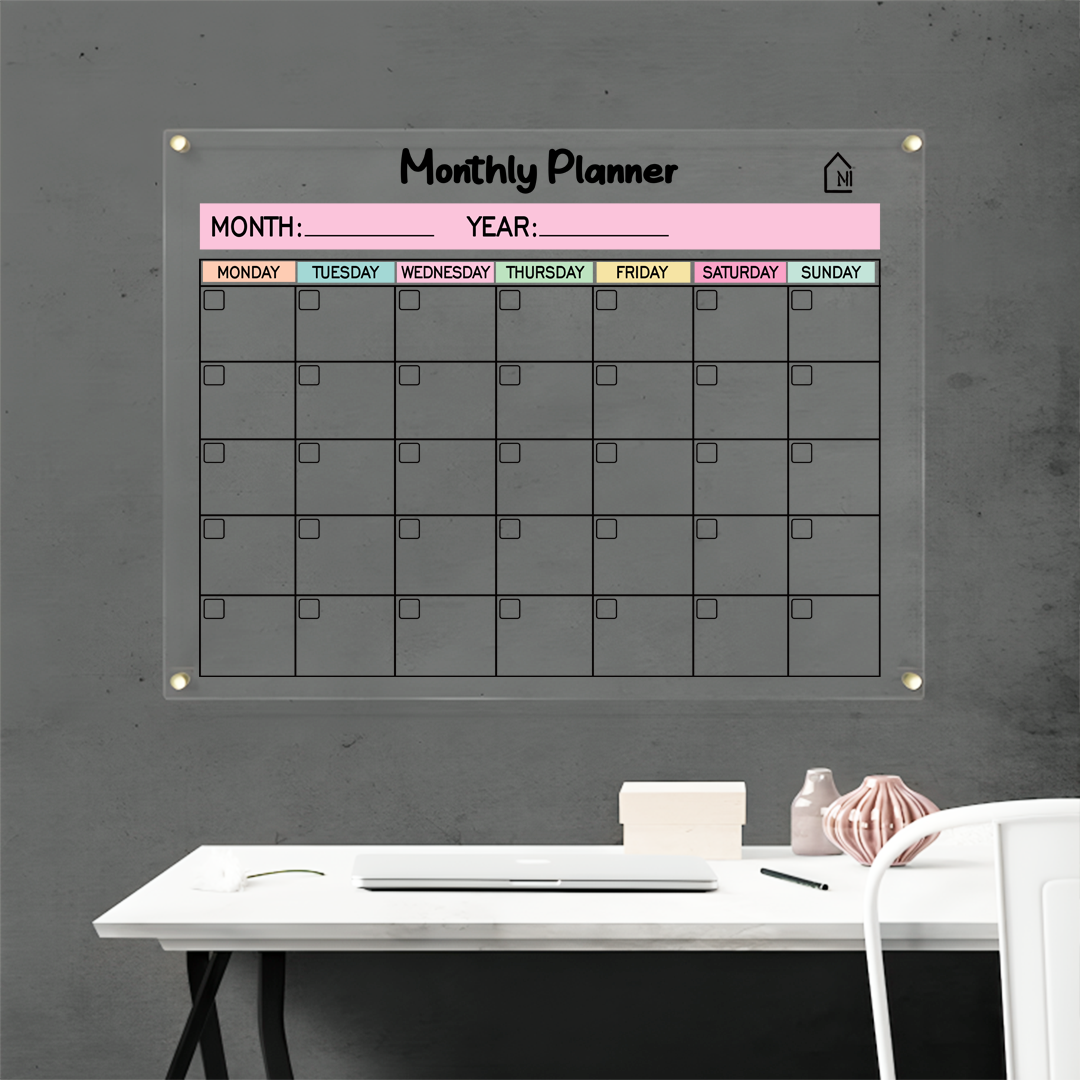 Stay organized in style with our Acrylic Monthly Wall Planner, designed to help you plan ahead, track important dates, and keep your schedule visible at a glance. Perfect for homes, offices, classrooms, and studios — this sleek planner combines modern aesthetics with practical functionality.