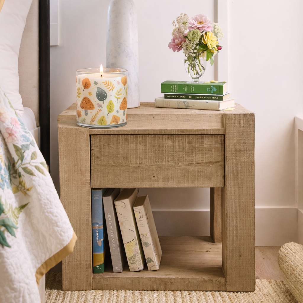 Cozy autumn leaf scented candle in a glass jar that fills your space with a warm, comforting fragrance while adding a charming seasonal décor touch—perfect for relaxation and gifting.