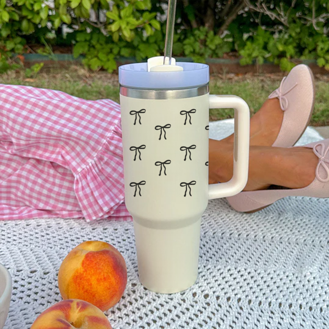 Add a touch of elegance to your drinkware collection with our White Bow Design Tumbler! 🎀