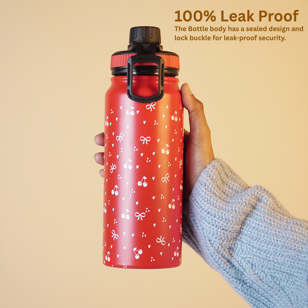 Bring style and convenience together with this Capacity Available 600ml, 800ml, 1000ml Cherry Print Stainless Steel Water Bottle. Designed with a cute cherry pattern and a vibrant red finish, this bottle is perfect for school, office, travel, gym, or outdoor use. Its leak-proof cap and durable steel body ensure your drinks stay safe and fresh throughout the day.