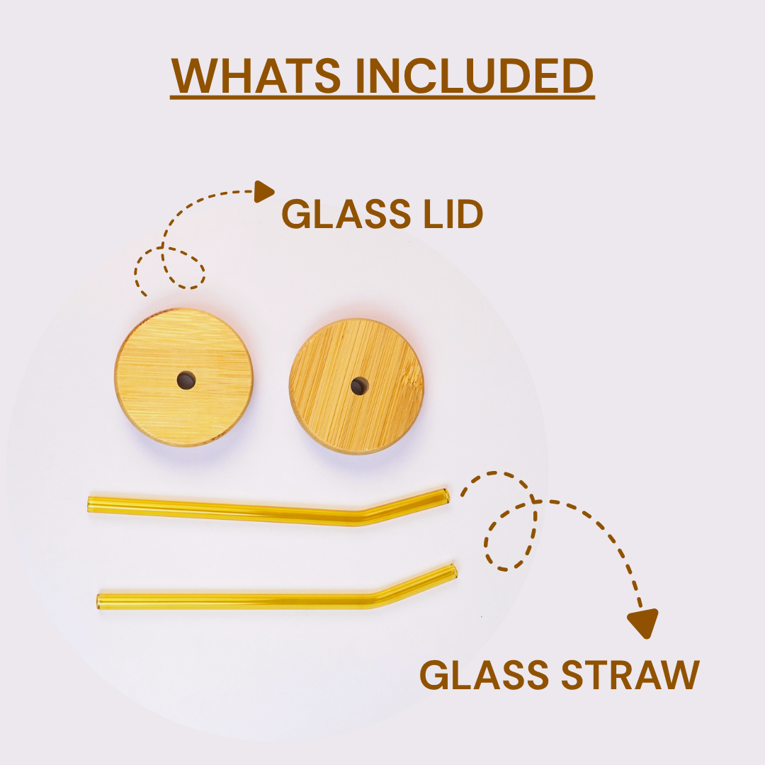 • Set Includes: 2 Glass Tumblers (with Bamboo Lid & Straw)