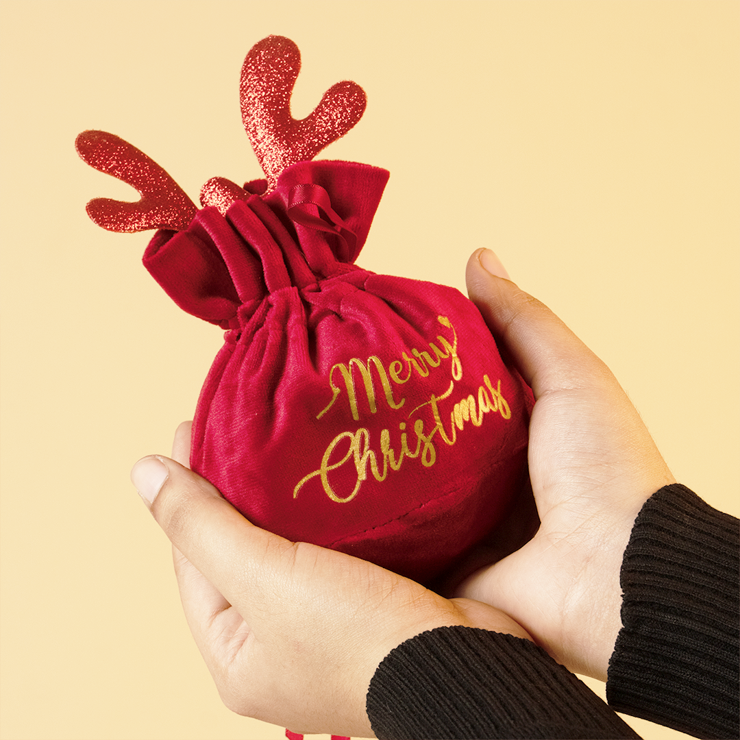 Make your holiday gifting extra magical with our Christmas Velvet Gift Bag, beautifully designed with sparkling reindeer antlers and a festive “Merry Christmas” golden print. This soft, premium velvet pouch adds a luxurious and cute touch to your Christmas décor and gift wrapping.