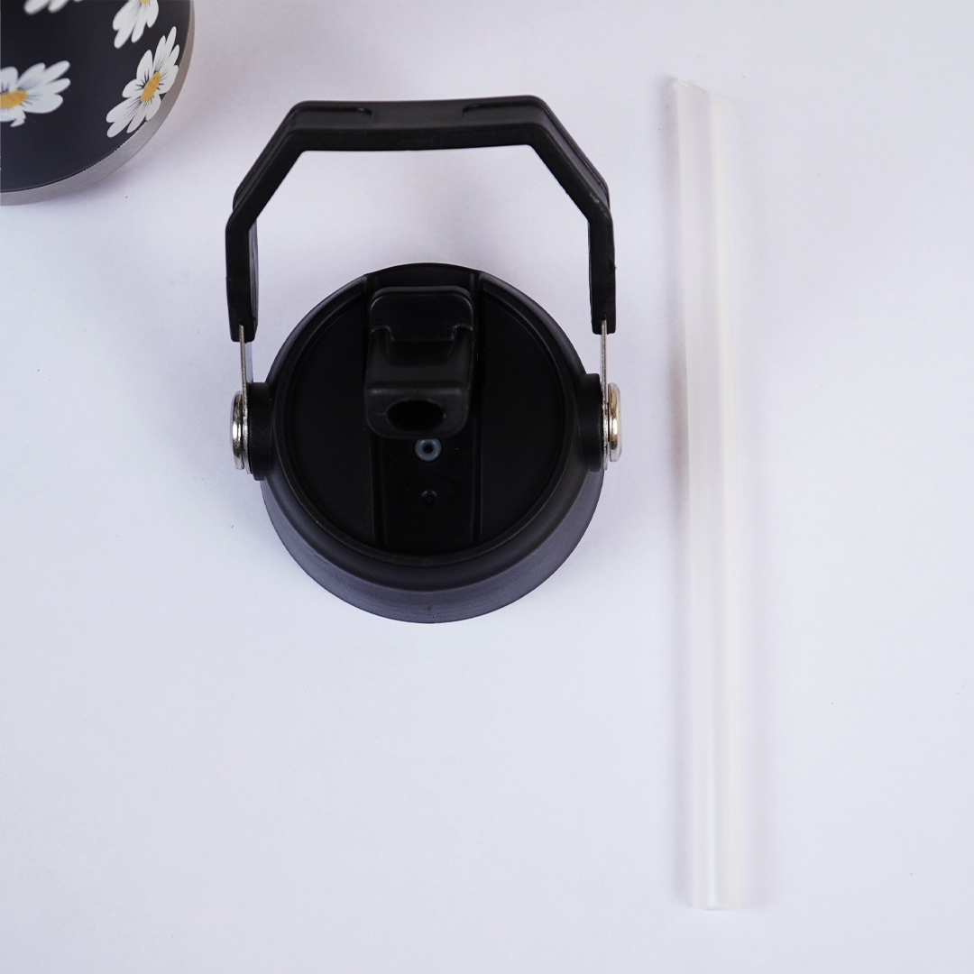 Stay refreshed in style with our Daisy Print Black Stainless Steel Water Bottle – 650ml, designed for fashion, comfort, and durability. The trendy white daisy pattern adds a fresh and aesthetic touch, making it perfect for school, office, travel, gym, or everyday use.