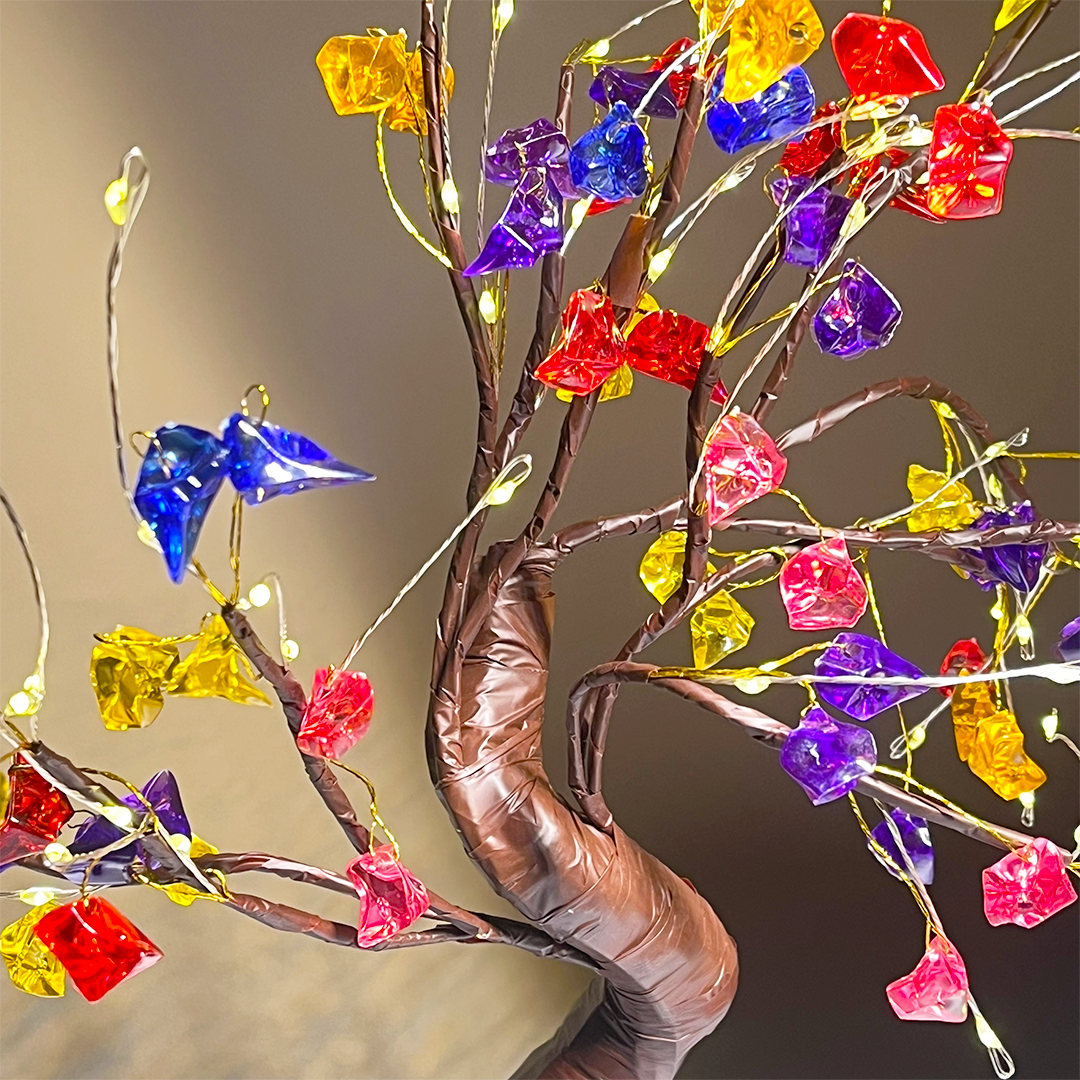 Lighting Type Warm white LED lights with multicolor crystal leaves (Yellow, Red, Purple, Pink)