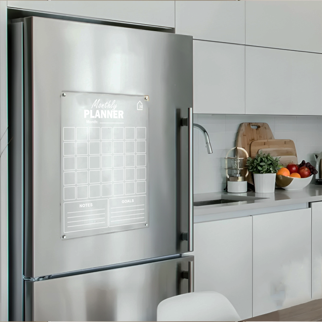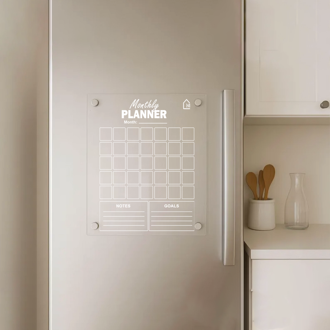 Minimal Acrylic Monthly Planner Board – Magnetic Fridge Organizer with Notes & Goals Section (Comes with Pen & Rag)