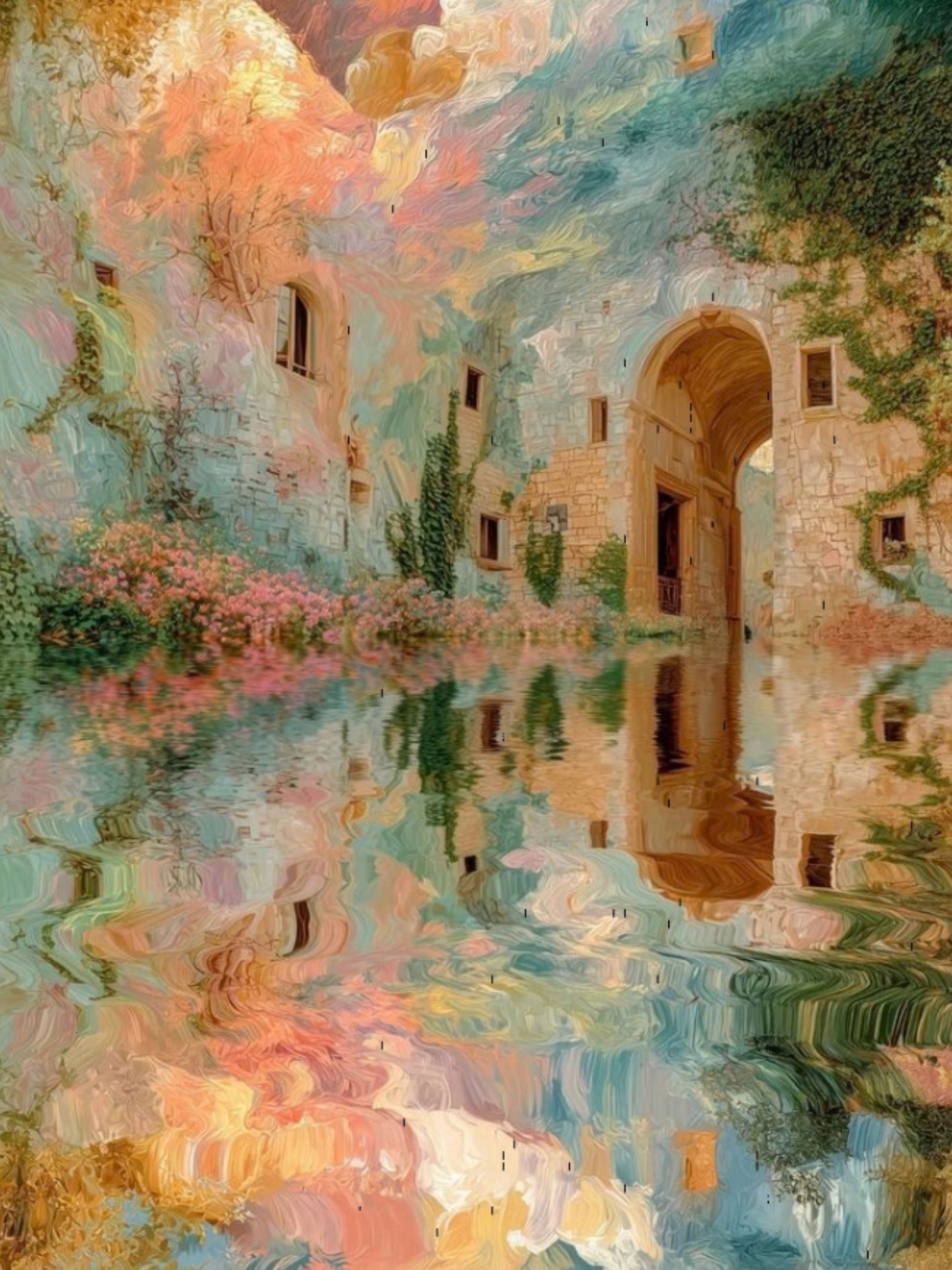 Add calm elegance to your space with this dreamy pastel landscape canvas. Featuring a beautiful architectural reflection and soft soothing colors, it’s perfect for creating a modern, peaceful vibe in any room.