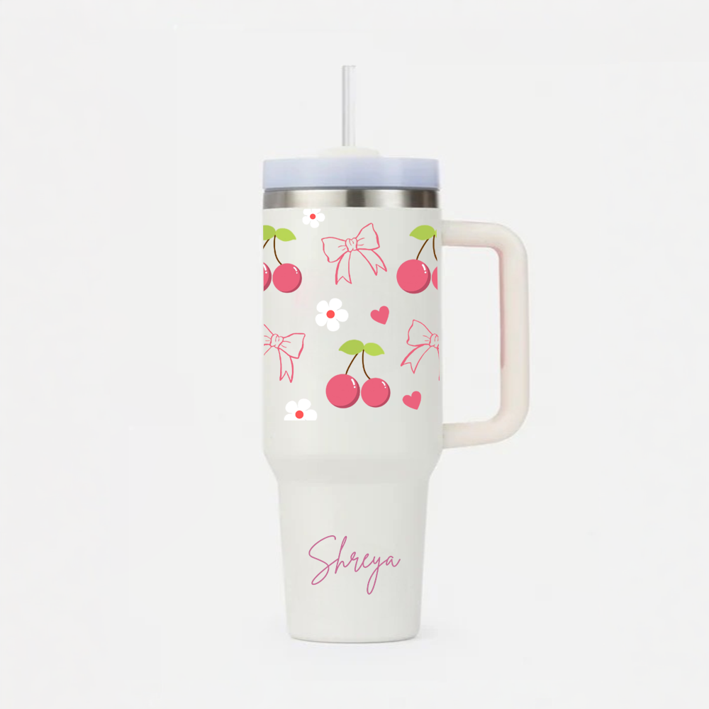 Upgrade your drinkware collection with our Cherry & Bow Design Tumbler! 🌟