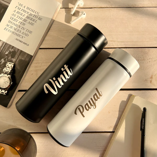 Never mix up your drink again with our Personalized Insulated Temperature Bottle. Designed to keep your beverages at the perfect temperature, this flask is ideal for hot and cold drinks alike. Reduce single-use plastic with this double-wall vacuum bottle, featuring a leak-proof screw cap for convenience on the go. Whether you’re at work, school, or the gym, this bottle is your perfect personalized accessory.