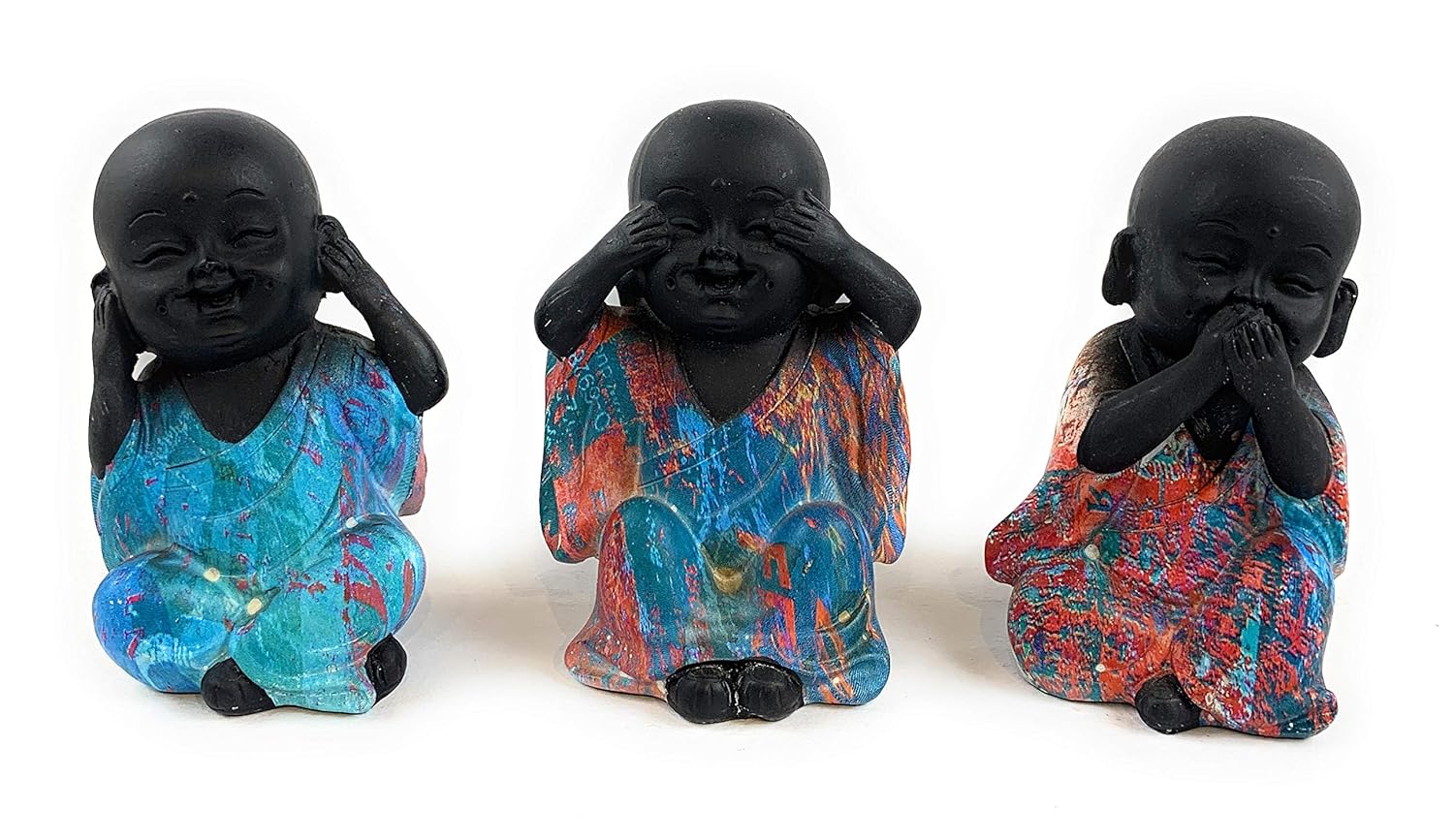 Polyresin Little Baby Monks Buddha (Standard, Black) - 3 Piece