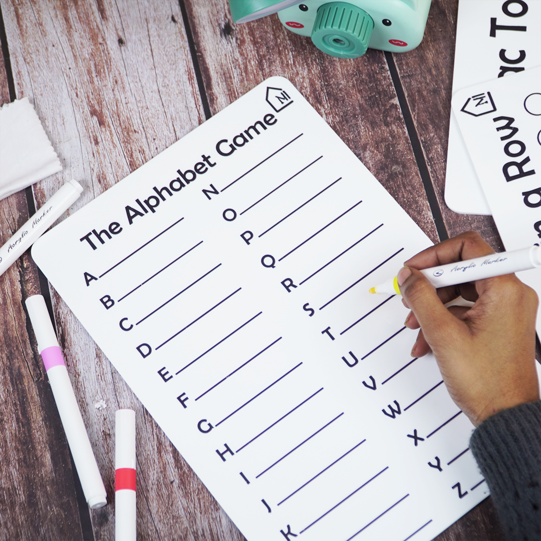 • Includes: Reusable alphabet board + pen box + cleaning cloth