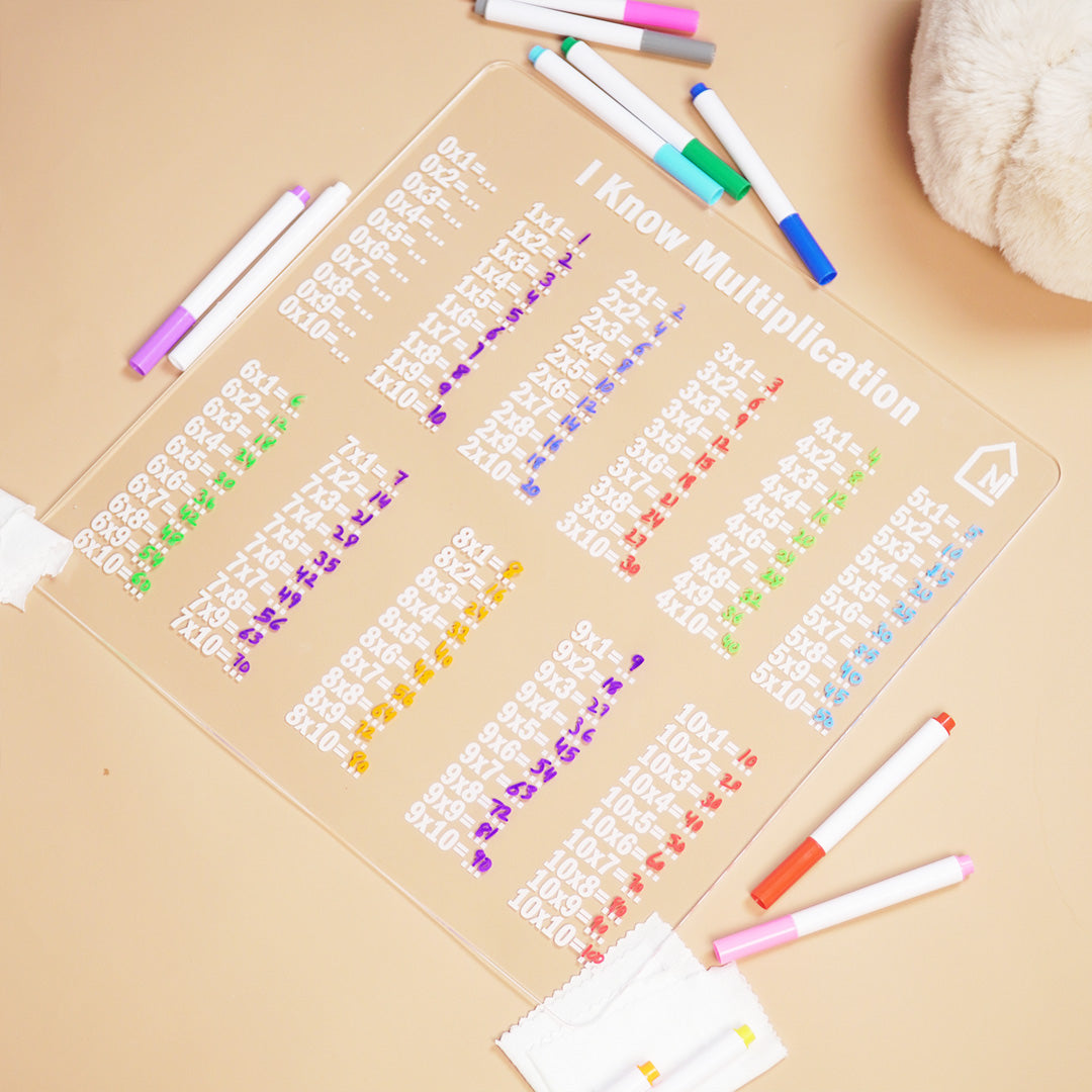 • Reusable Write & Wipe Board – Practice multiplication again and again without paper waste
