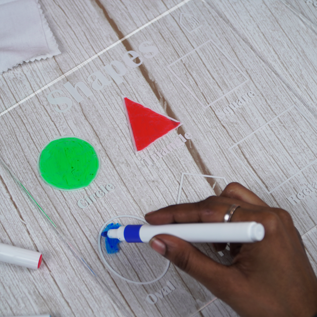 • Reusable Learning Board: Wipe-clean surface allows kids to practice shapes again and again