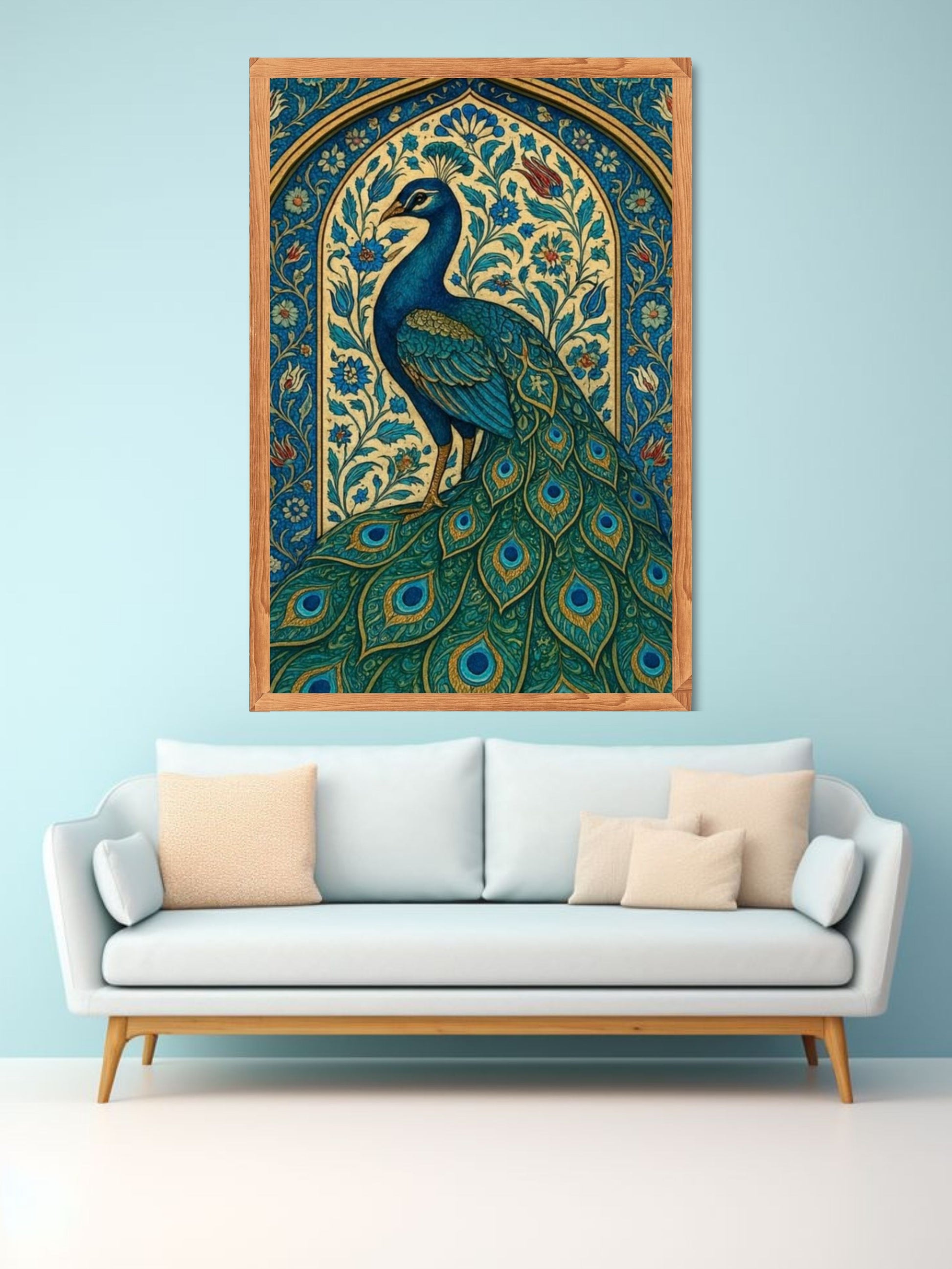 Add timeless elegance and cultural charm to your home with this stunning royal peacock canvas wall art. Featuring a beautifully detailed peacock framed within intricate traditional patterns, this artwork symbolizes grace, beauty, and prosperity.