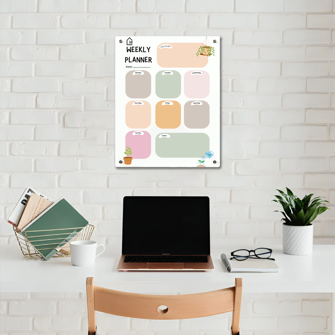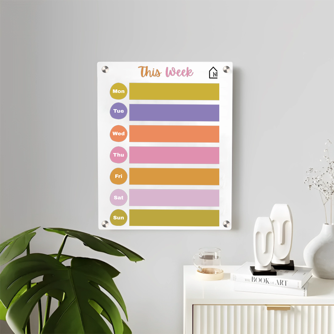 Colorful Acrylic Milky Weekly Planner Board – Reusable Wall Organizer for Home, Office & Study