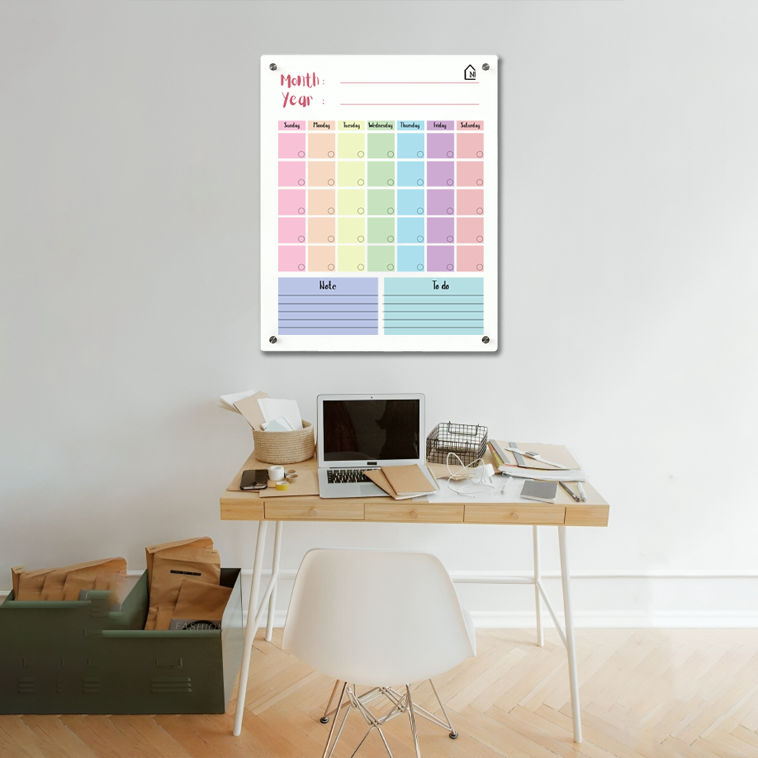 Colorful Acrylic Monthly Milky Planner Board with Notes Section – Reusable Wall Calendar for Home & Office