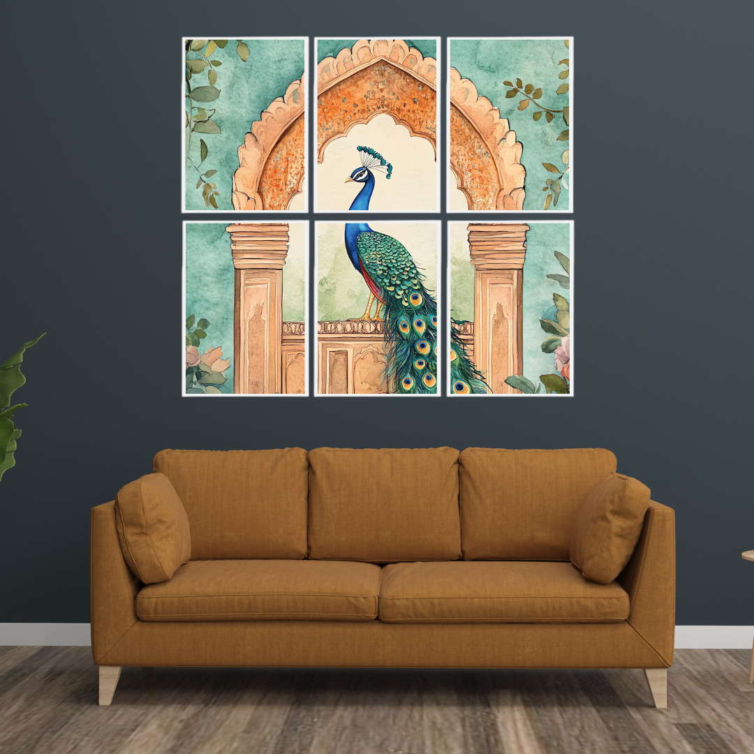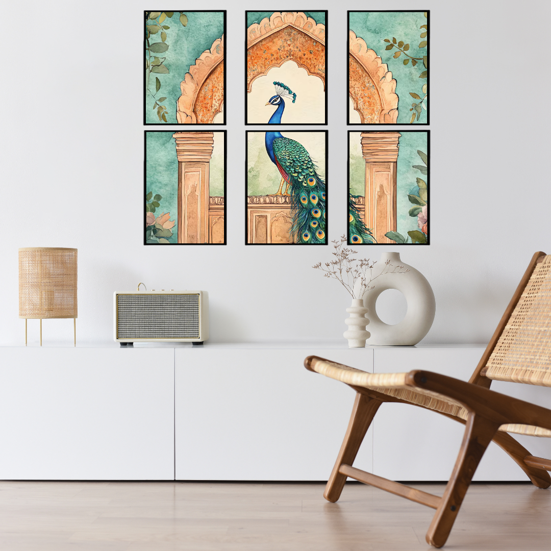 Royal Peacock Multi-Frame Wall Art | Traditional Indian Décor