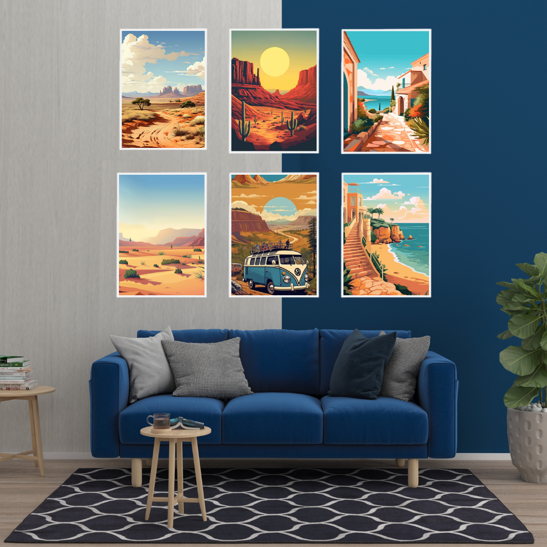 Travel & Adventure Wall Art Set | Desert, Beach & Road Trip Posters SET OF 6