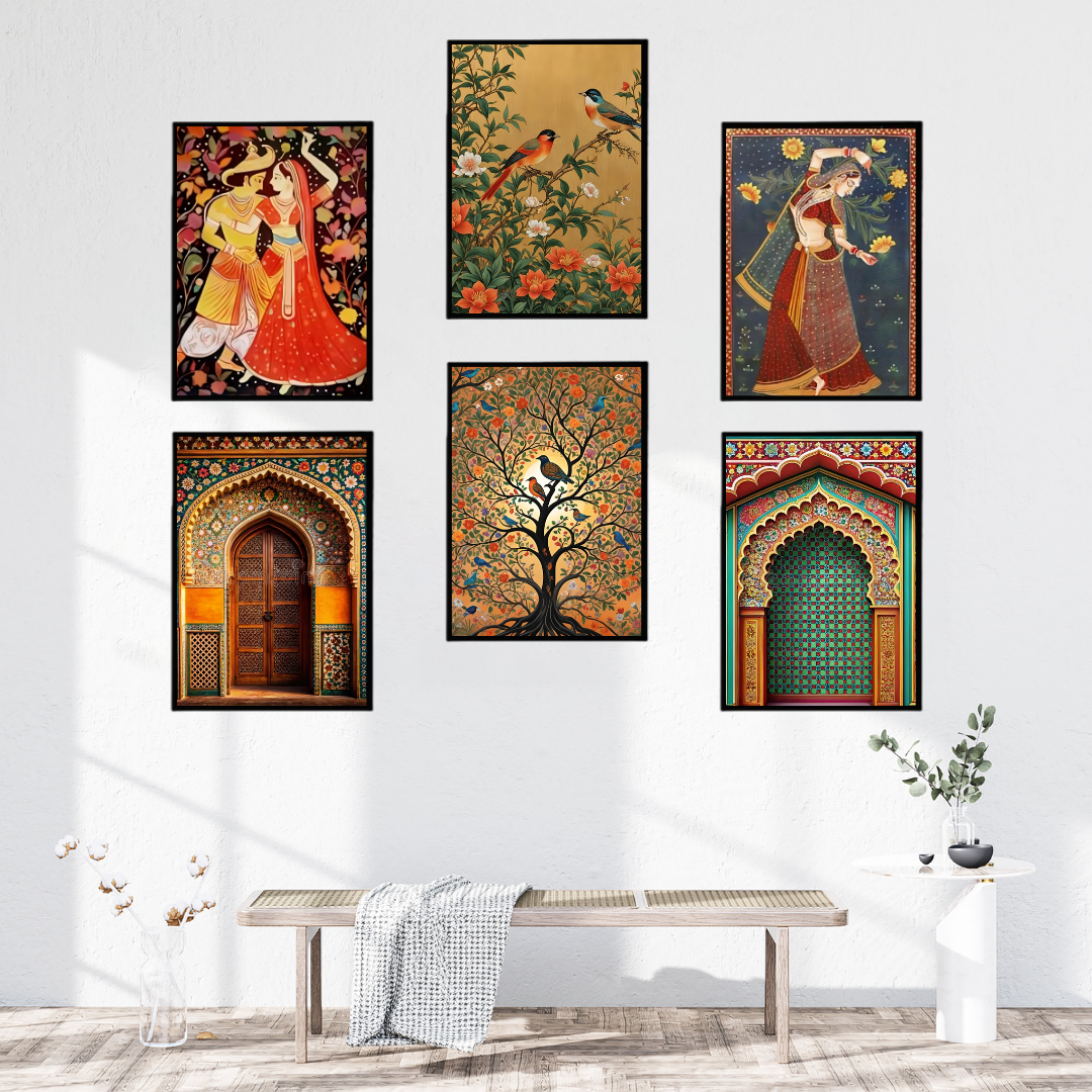 Royal Rajasthani Wall Art | Traditional Indian Paintings set of 6