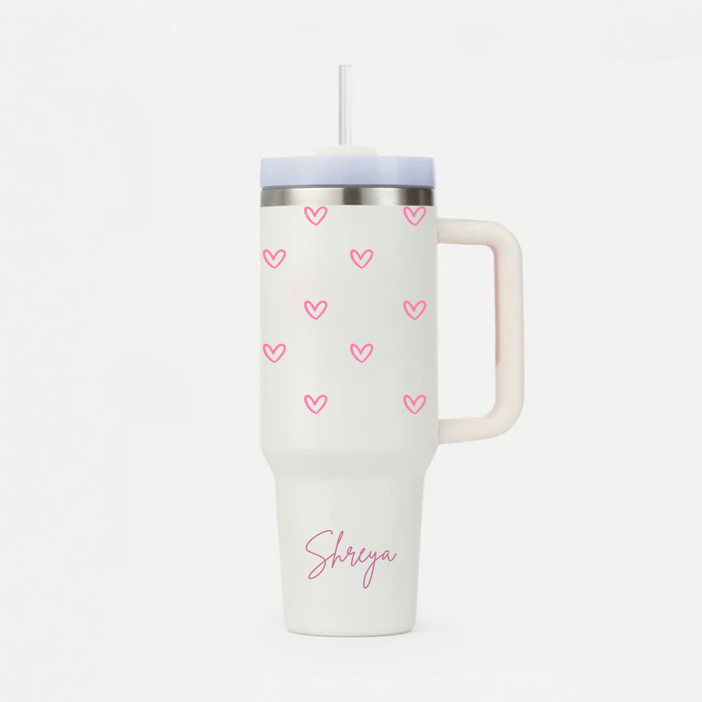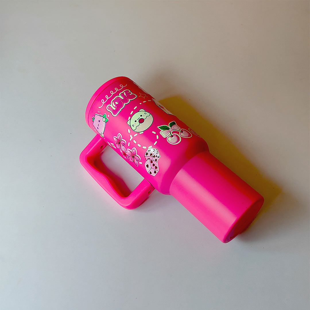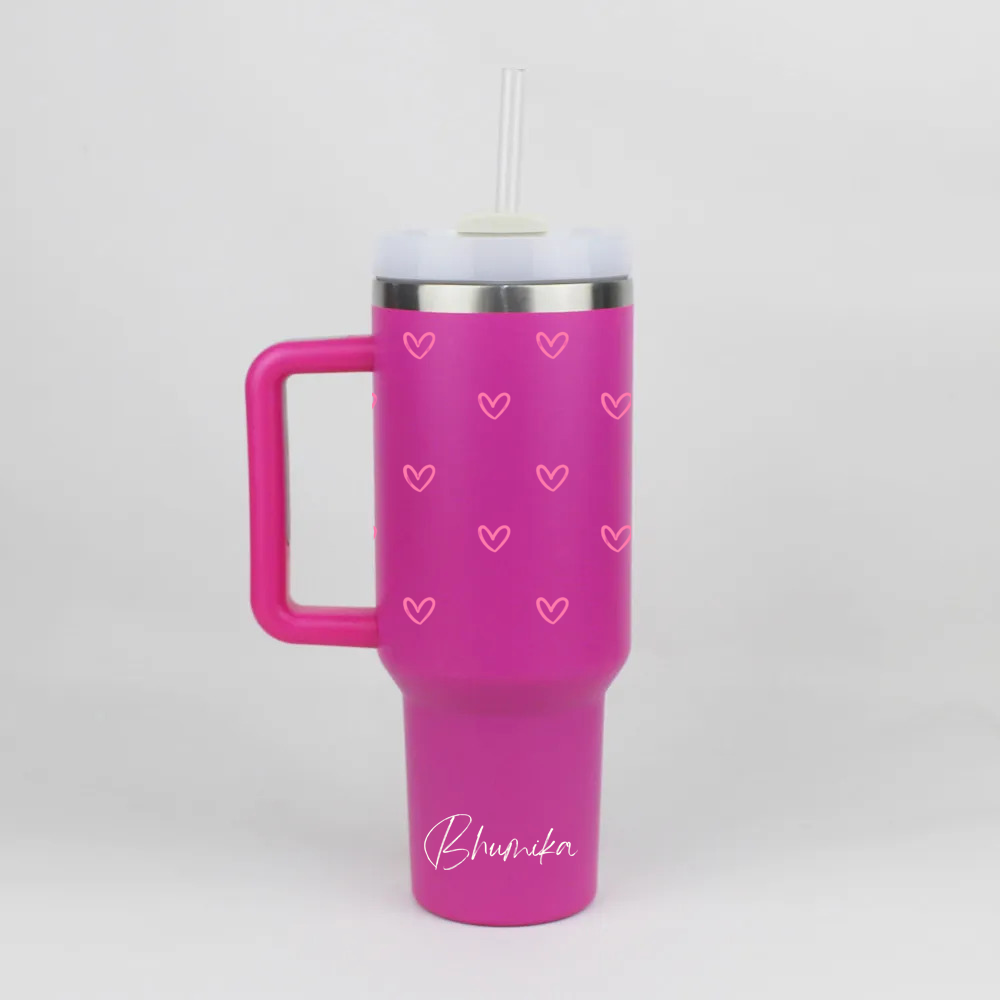 “Hot Pink Love Doodle Tumbler – Leak-Proof & Stylish”